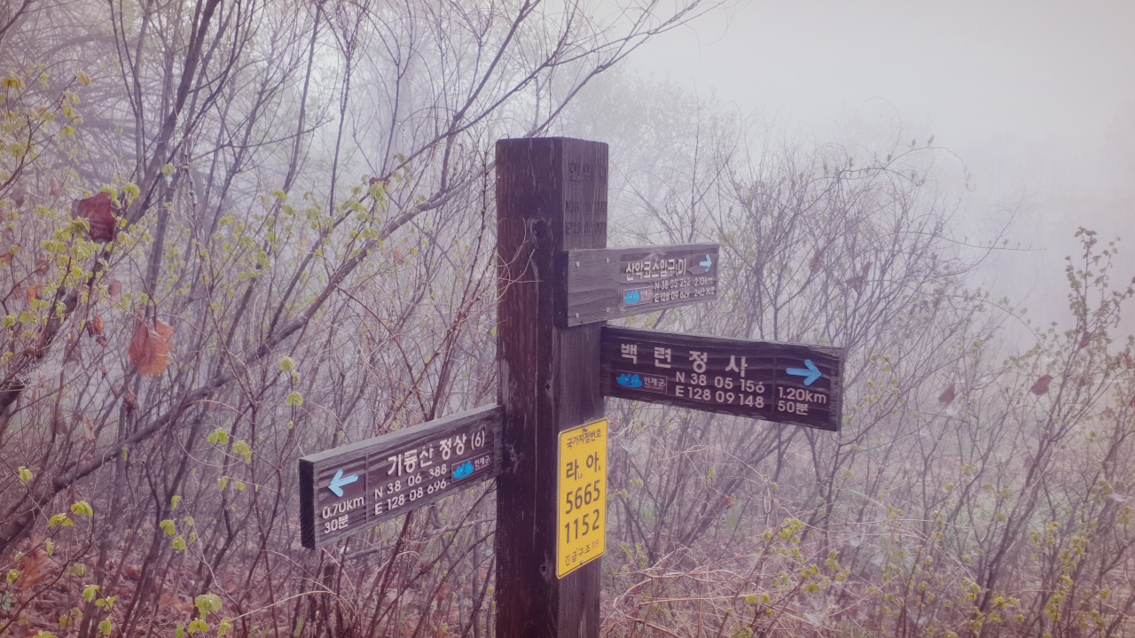 짙은 안개에 조망은 볼 수 없지만, 안개 속에 쌓인 신비함과 툭~툭~ 떨어지는 물방울에 발걸음이 가볍네요.