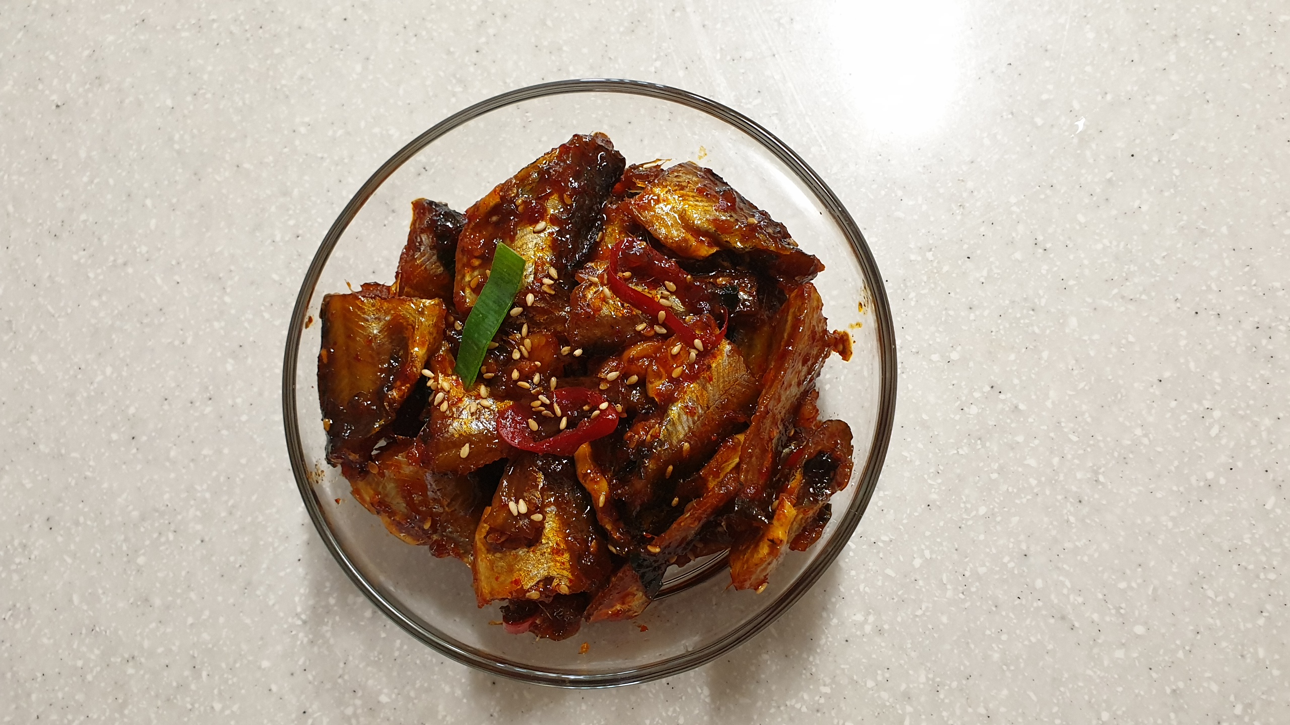 애들 엄마가 오늘 일요일 집에서 이것저것 양념을 섞어 가며 도루묵 볶음을 만들었습니다.
