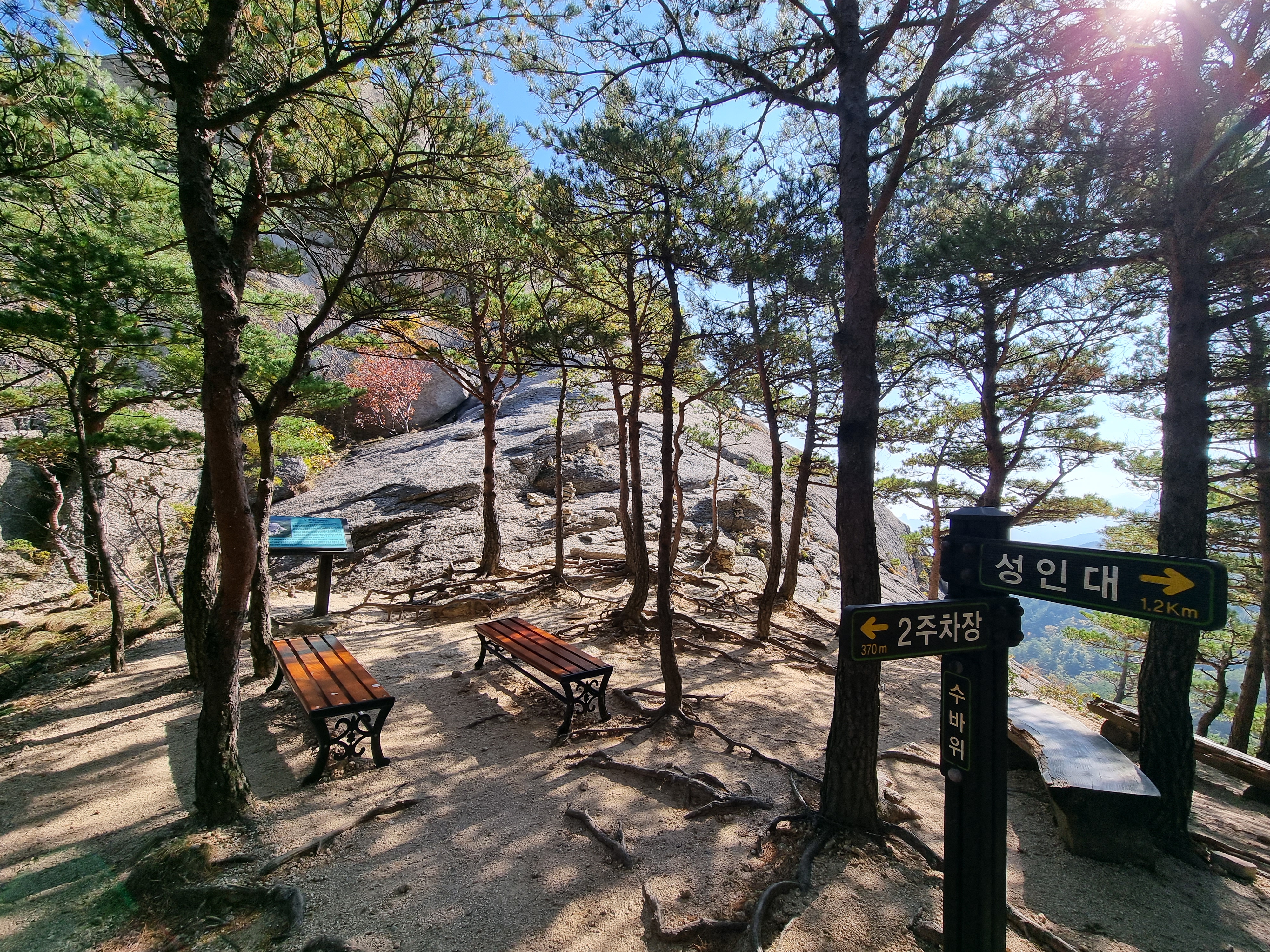 코스는 수바위 - 시루떡바위 - 성인대 - 신선대 - 낙타봉 - 성인대 - 미시령 삼거리 - 화암사로 내려오는 둘레길입니다.
