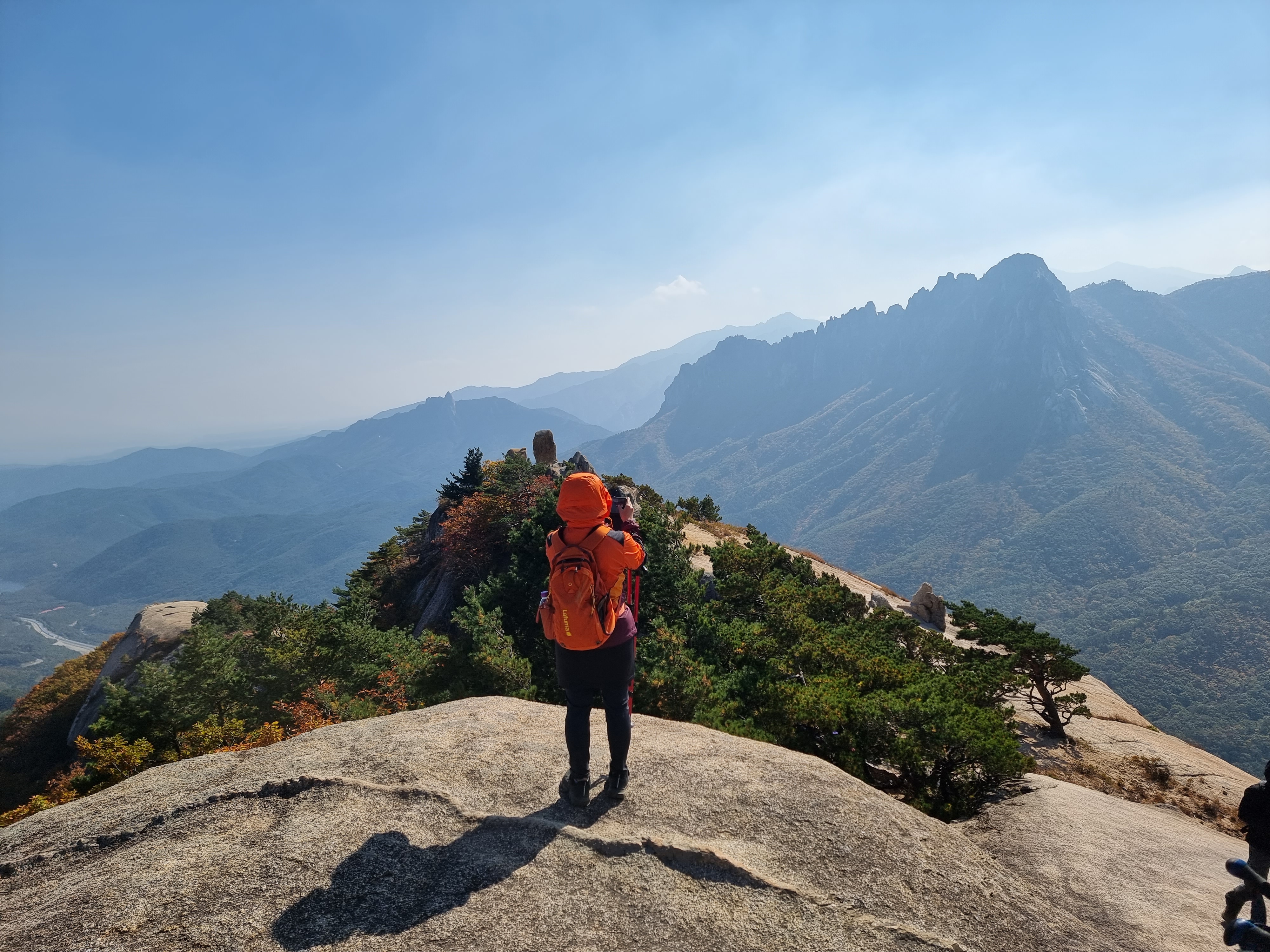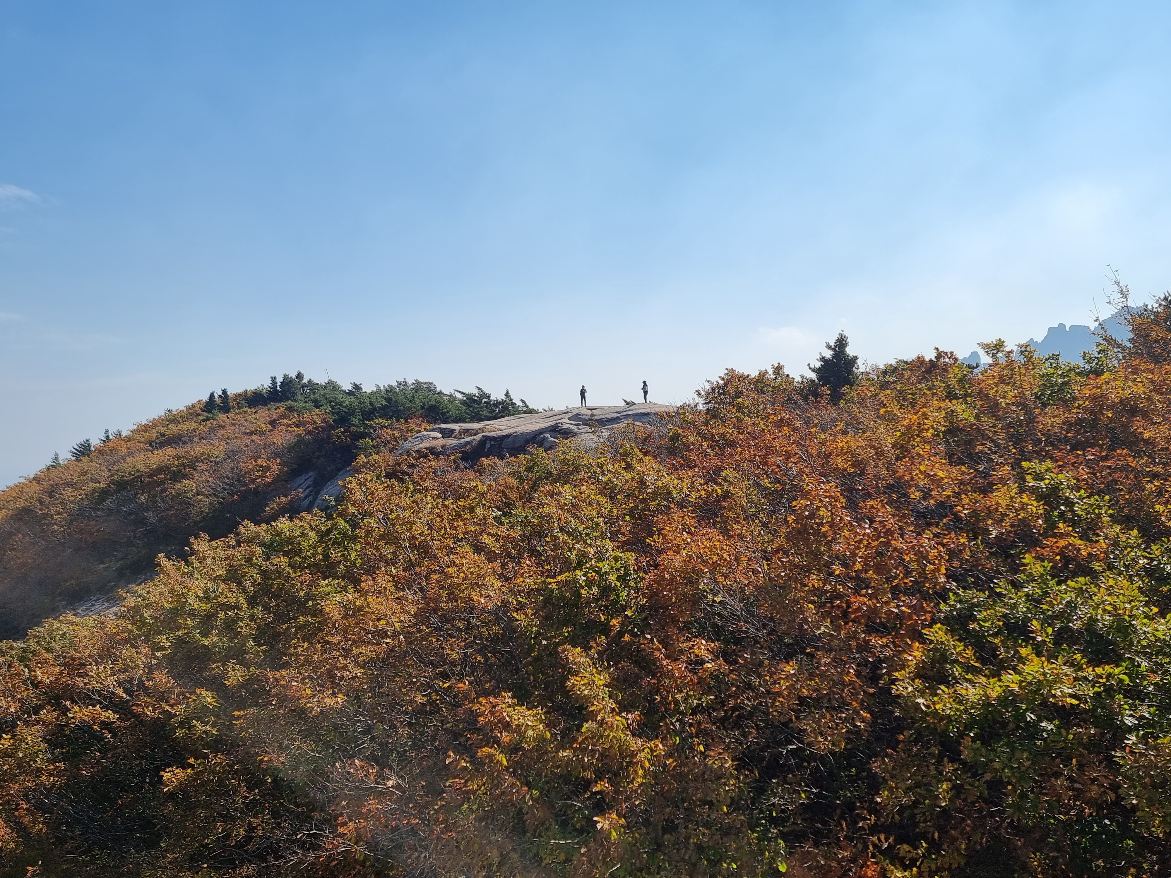 성인대에서 신선대 방향을 담아봅니다. 바위 능선 위에는 사람들이 멋진 풍경을 감상하느라 바쁩니다.