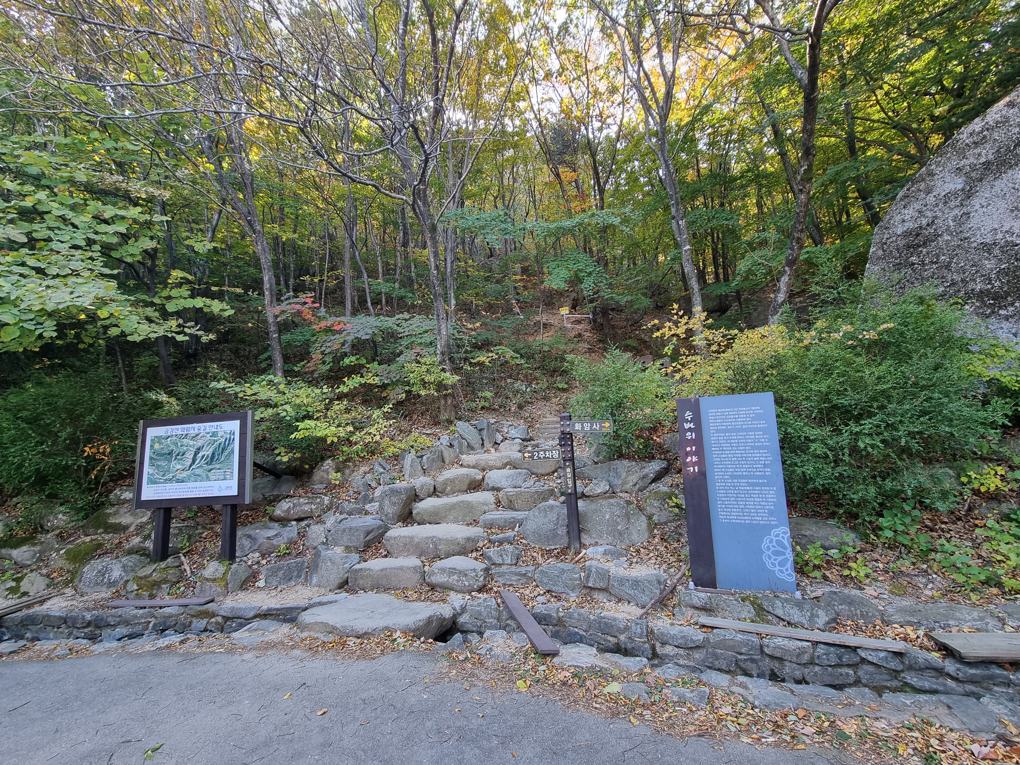 우리는 1주차장에 주차를 하고 산책길끝부분이 기념품 가게까지 걸서어서 간 후 산행을 시작했습니다.