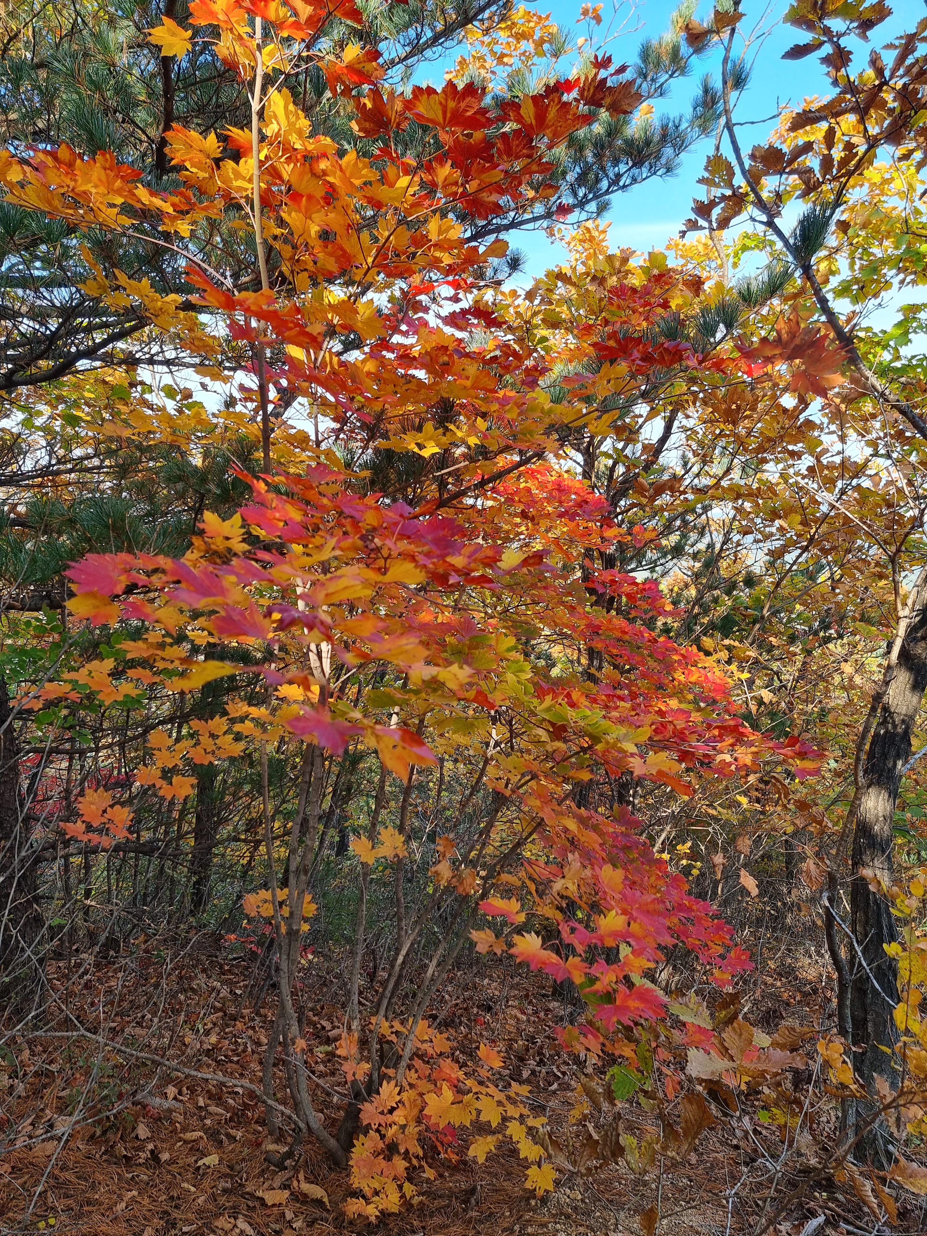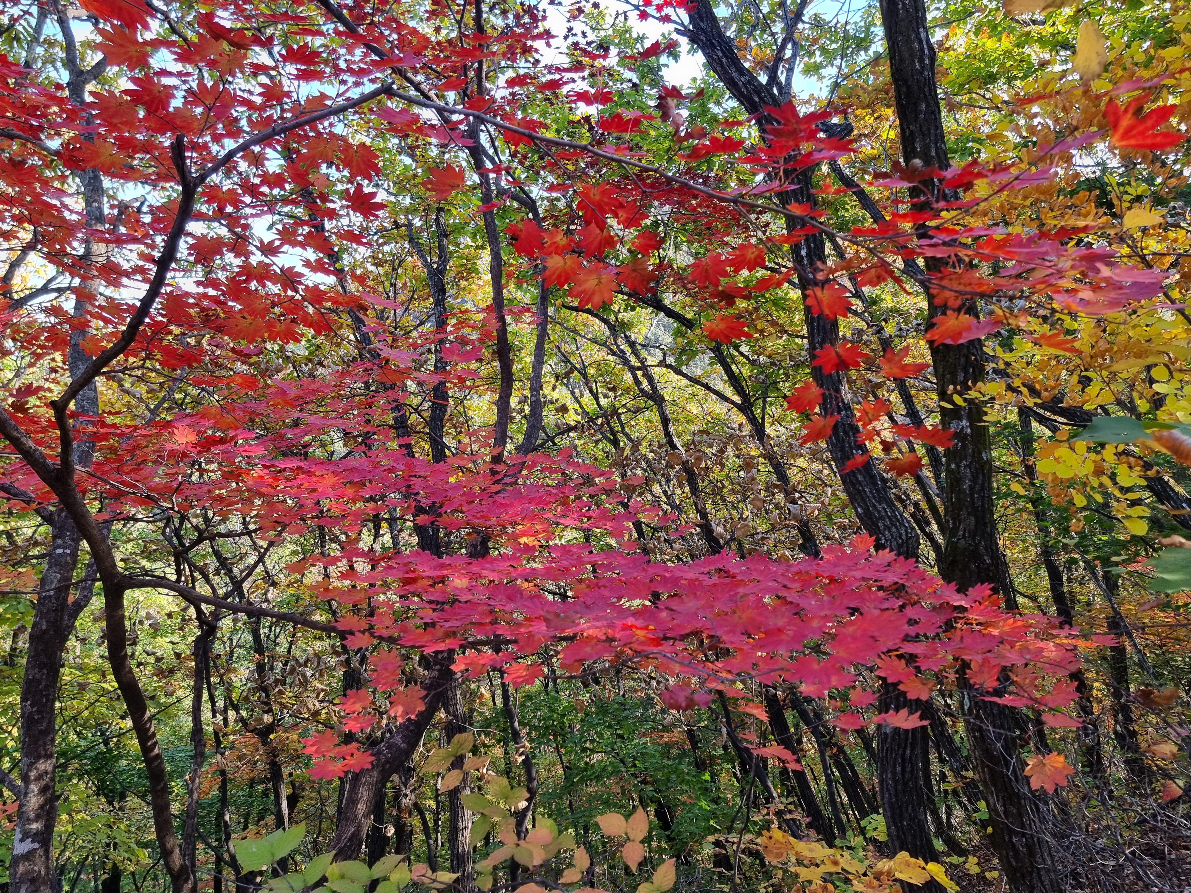 숨을 몰아 쉬며 오르다 단풍이 예뻐 스마트 폰으로 담아 봅니다.