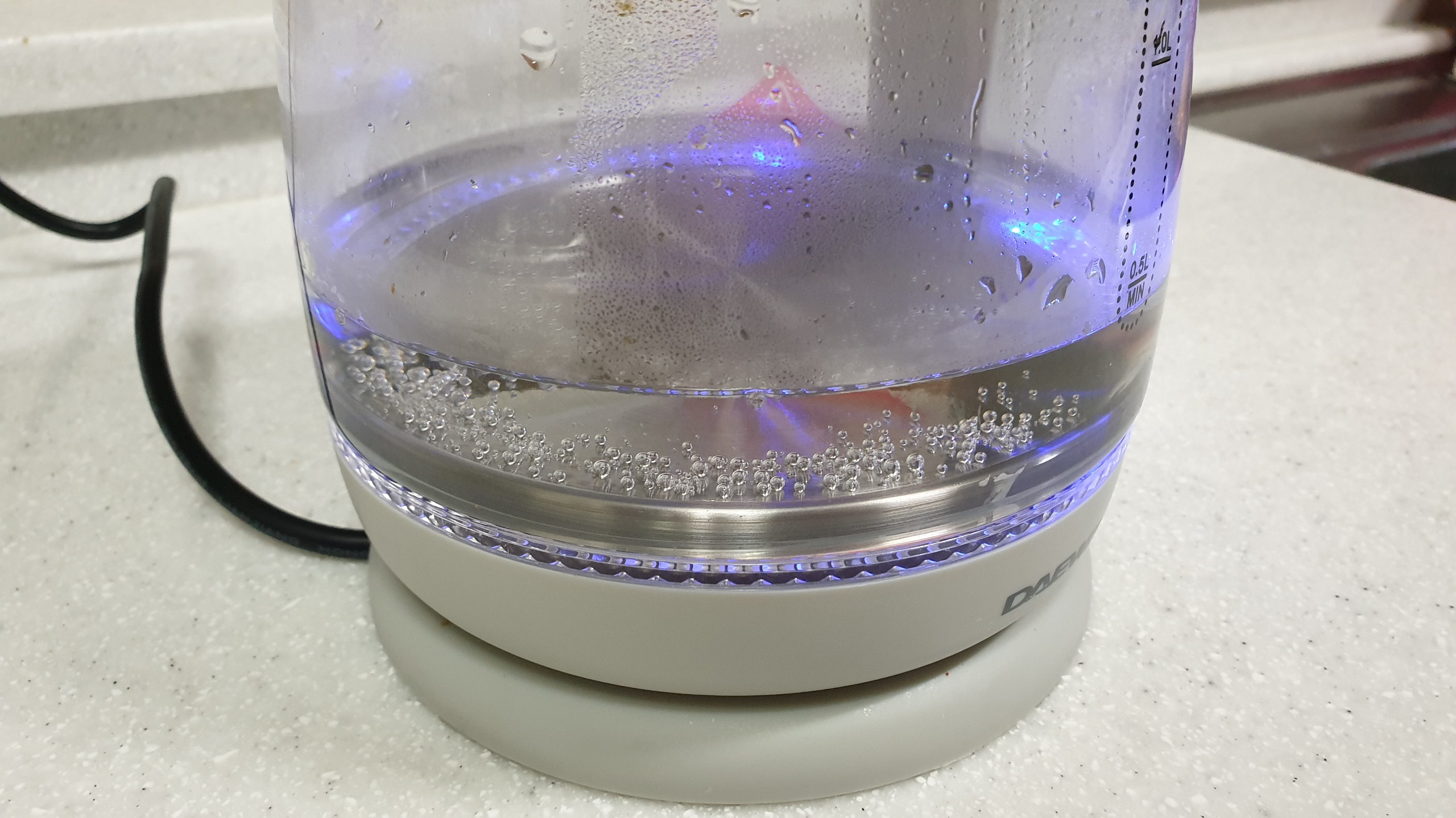 물이 끓는 것을 보면 회오리처럼 손잡이 앞쪽이 먼저 끓으면서 자연적으로 물이 순환하는 구조입니다.