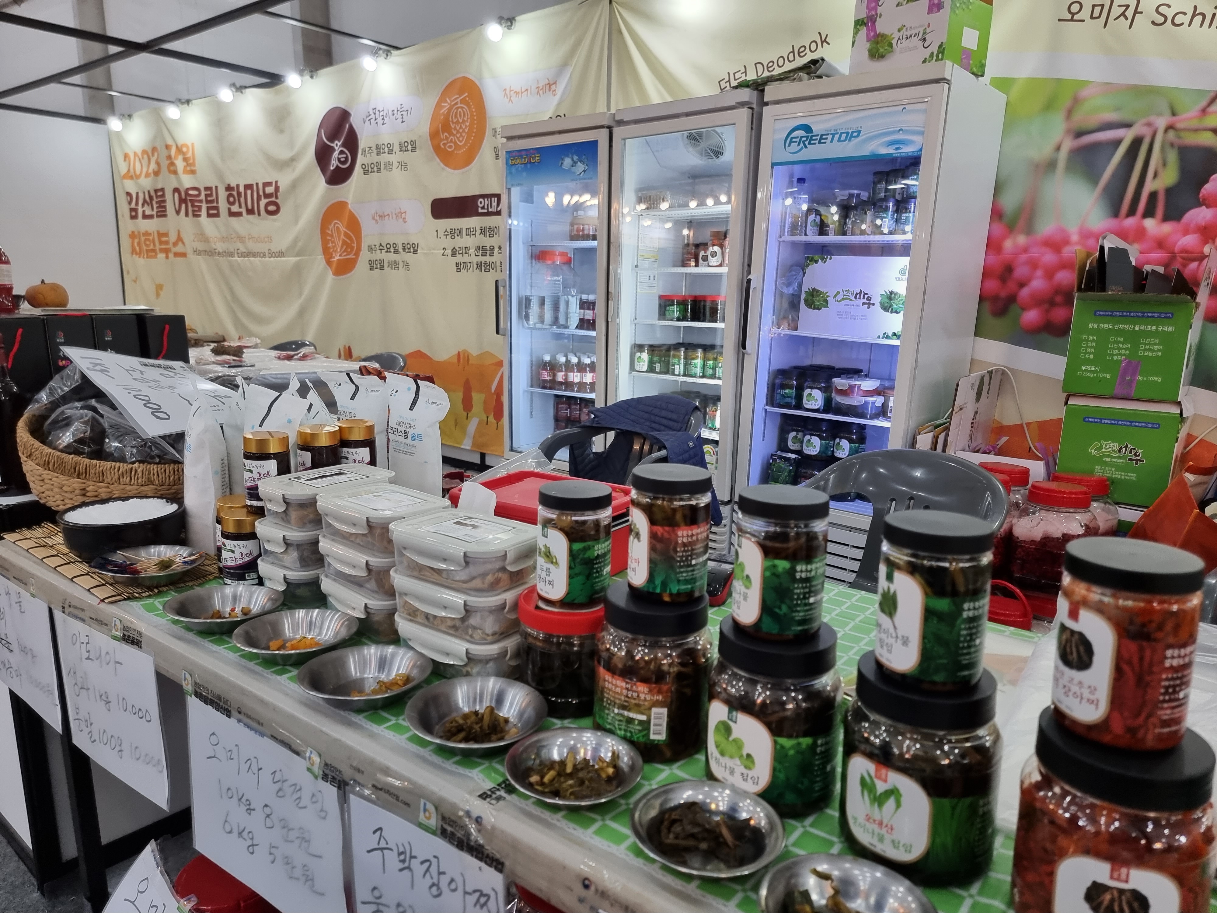 산업협력관에는 특산물을 전시하고 판매하고 있습니다.