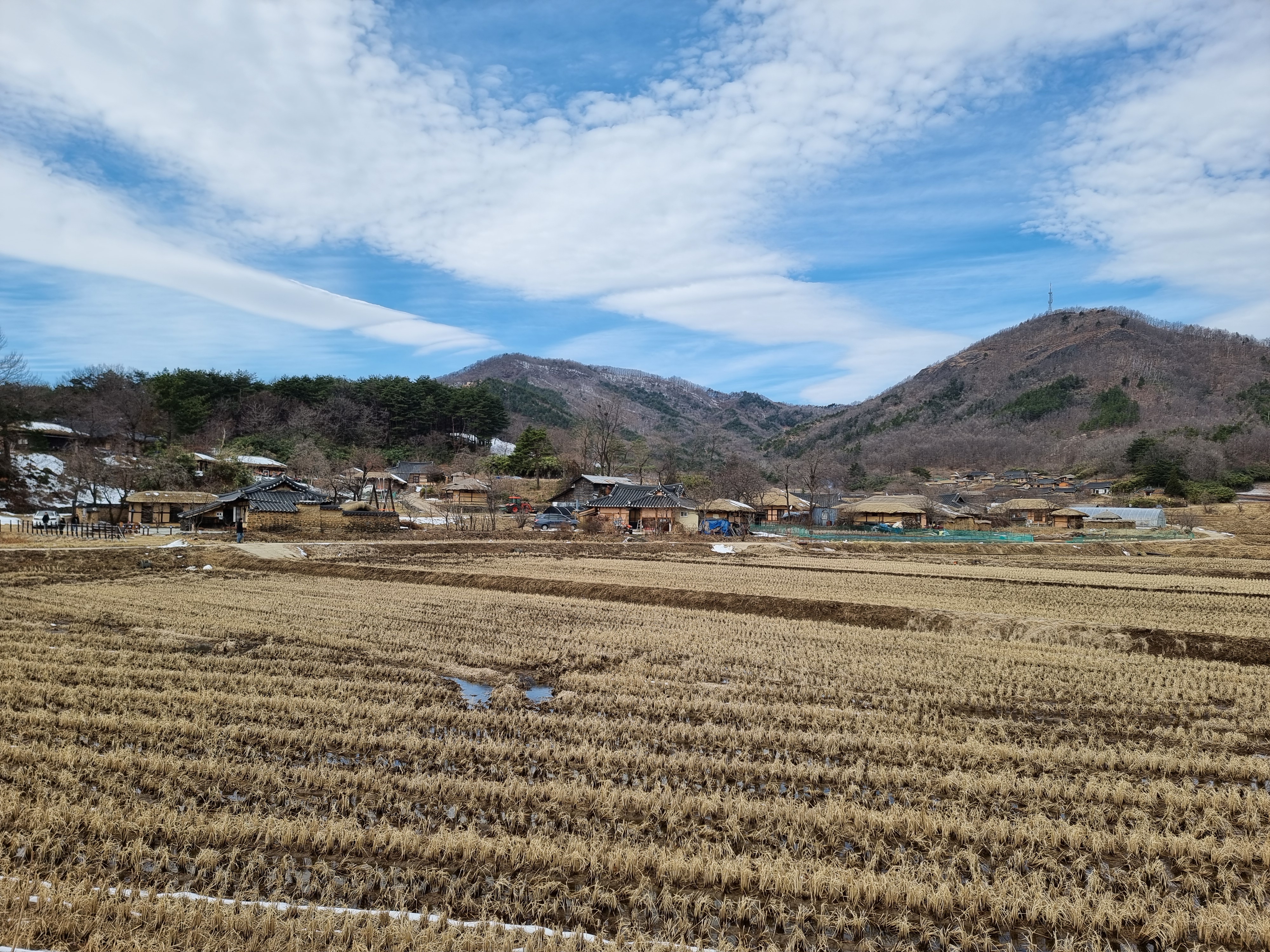 논 뒤로 보이는 왕곡 민속마을과 뒤로는 오봉산이 자리 잡고 있어 멀리서 봐도 시대를 뛰어 넘어 과거로 온 느낌이네요.