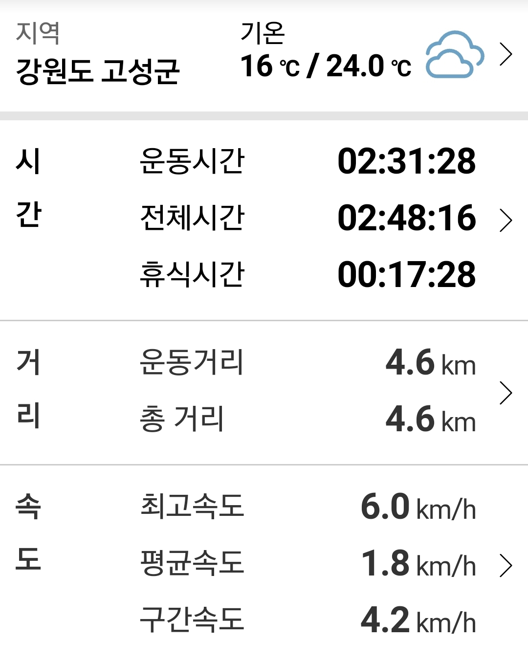 2021년 9월26일 일요일. 4.6km 2시간 38분 소요.