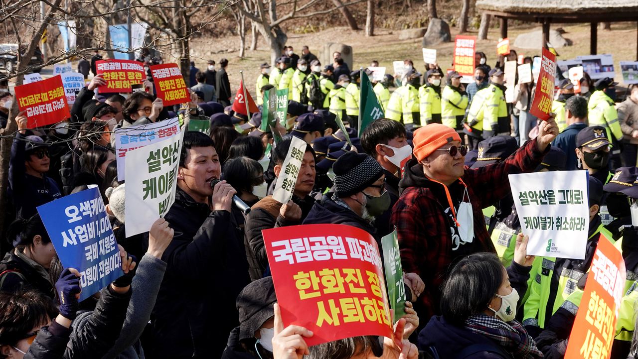 오늘(3월 3일) ‘제3회 국립공원의 날’ 행사가 열리는 광주 무등산국립공원에 전국에서 모인 100여 명의 시민들이 설악산을 파괴하는 결정을 한 한화진 환경부장관 사퇴를 촉구했다.