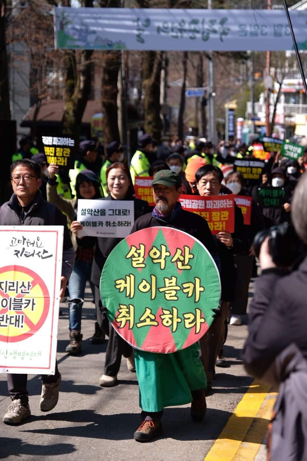 국립공원을 사랑하는 시민들과 국립공원무등산지키기시민연대, 설악산국립공원지키기국민행동, 강원행동, 케이블카반대설악권주민대책위와 지리산산악열차반대대책위는 오늘 국립공원을 파괴하는 한화진 환경부장관의 사퇴를 요구하며 국립공원의날 행사장인 문빈정사 방향으로 행진했다. 하지만 문빈정사 근처에서 경찰들에 의해 제지되며 행진이 중단 되었다.
