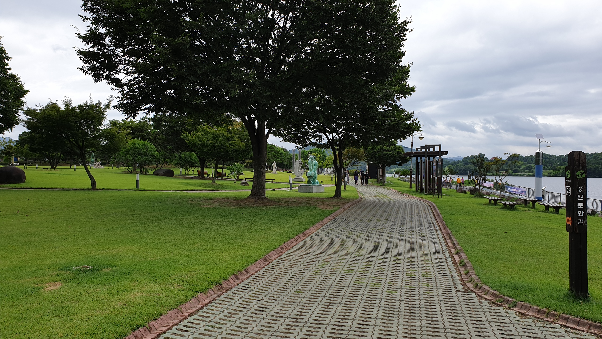 공원내의 조형물과 넓찍한 잔디밭입니다. 공원부지 저체가 넓다보니 잔디밭이 대부분을 차지하고 넓찍넓찍한 것이 좀 특색이 있네요.