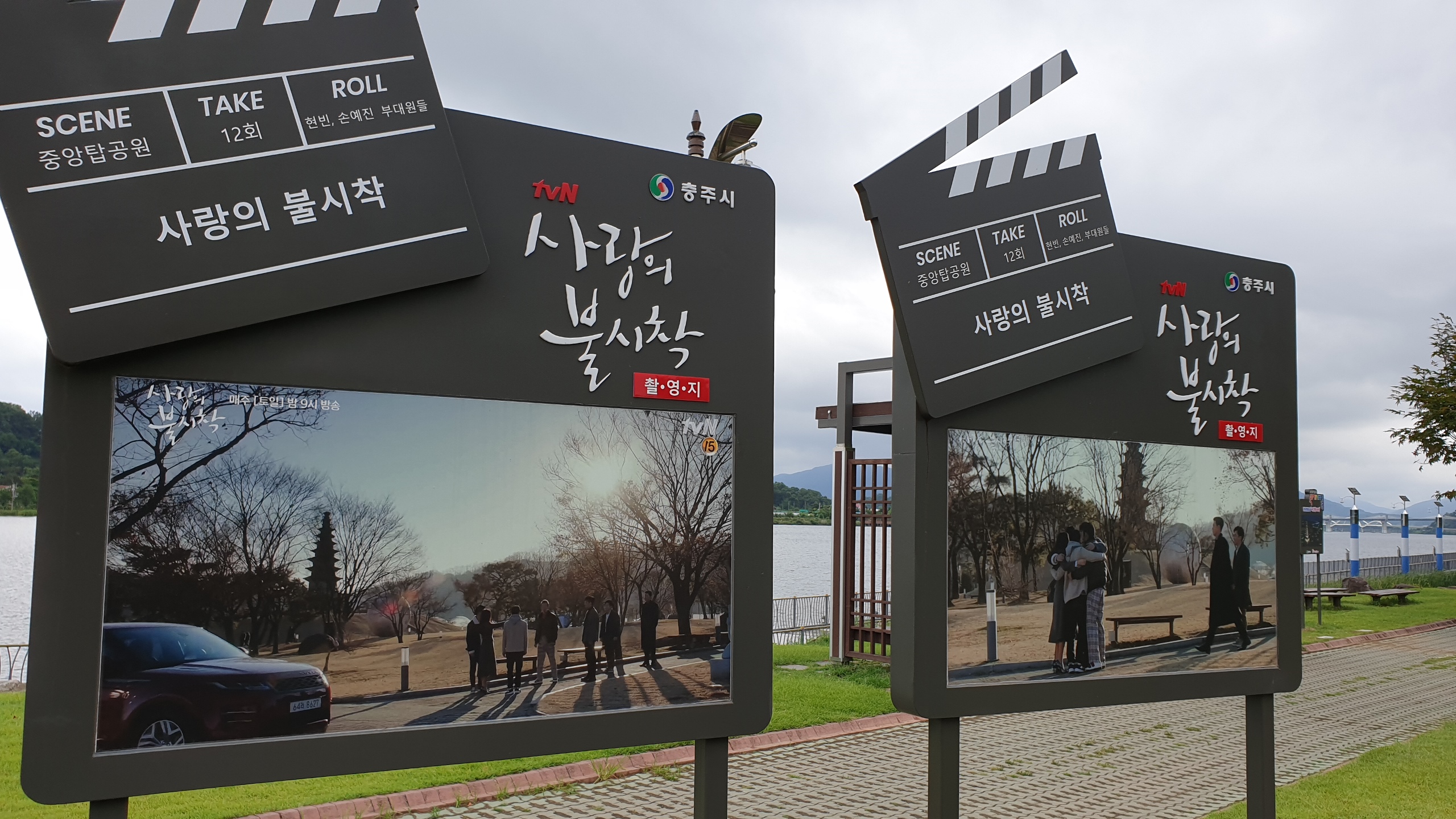 사랑의 불시착 촬영지임을 알 수 있도록 요런 것을 만들어 세워 놓았네요.