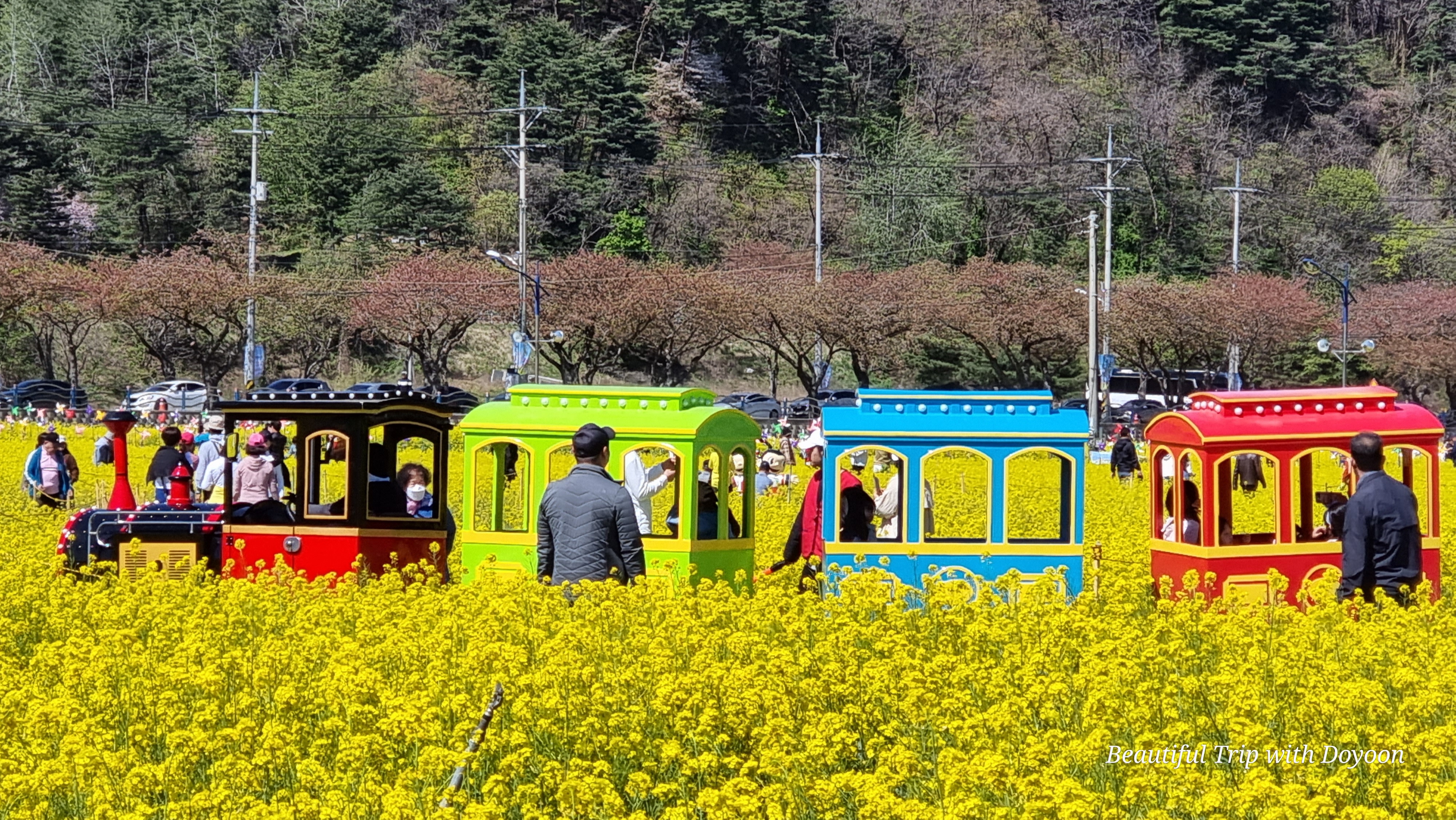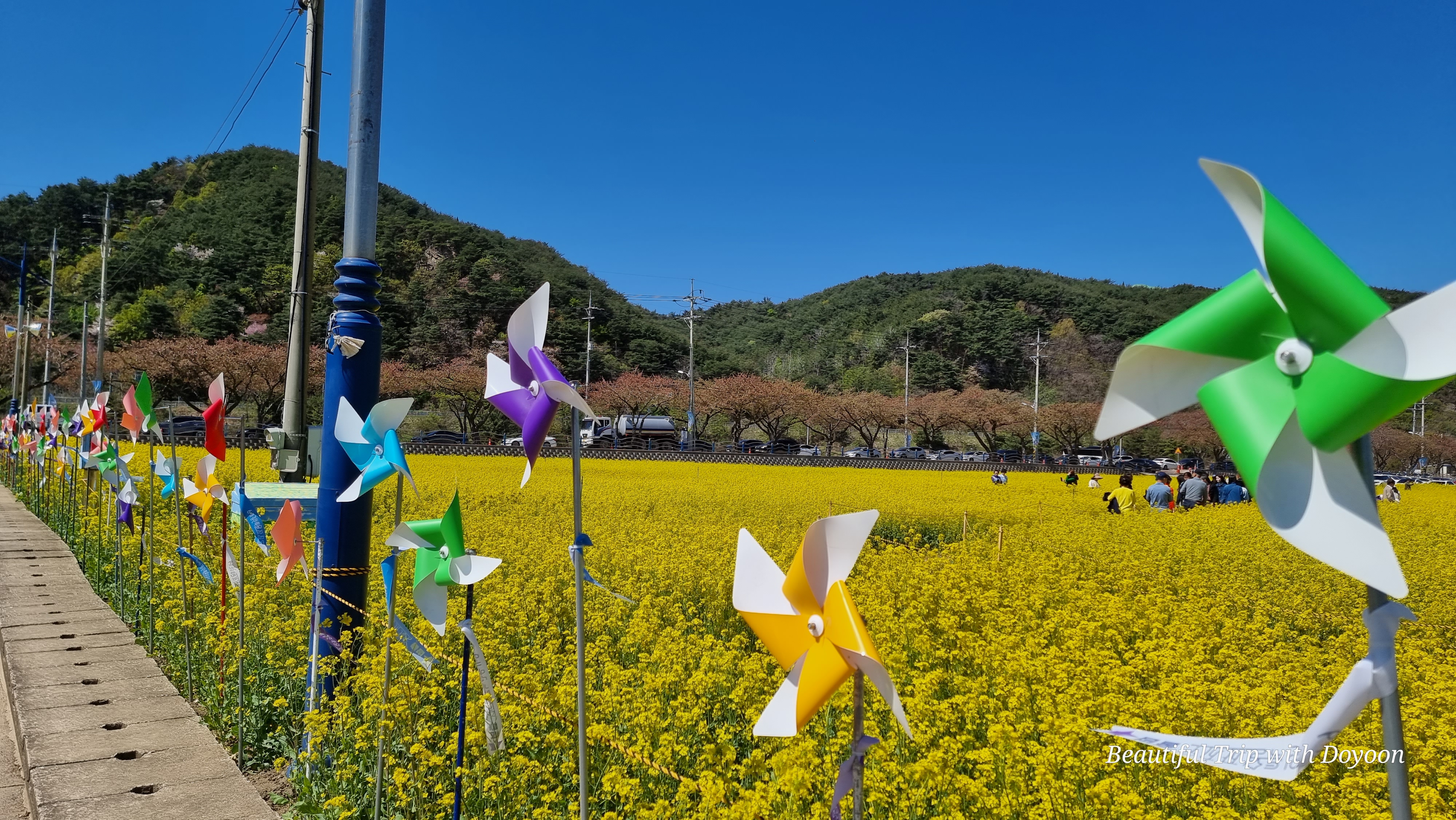 노란색 물결이 저 멀리까지 퍼져 나가는 파도 같네요.