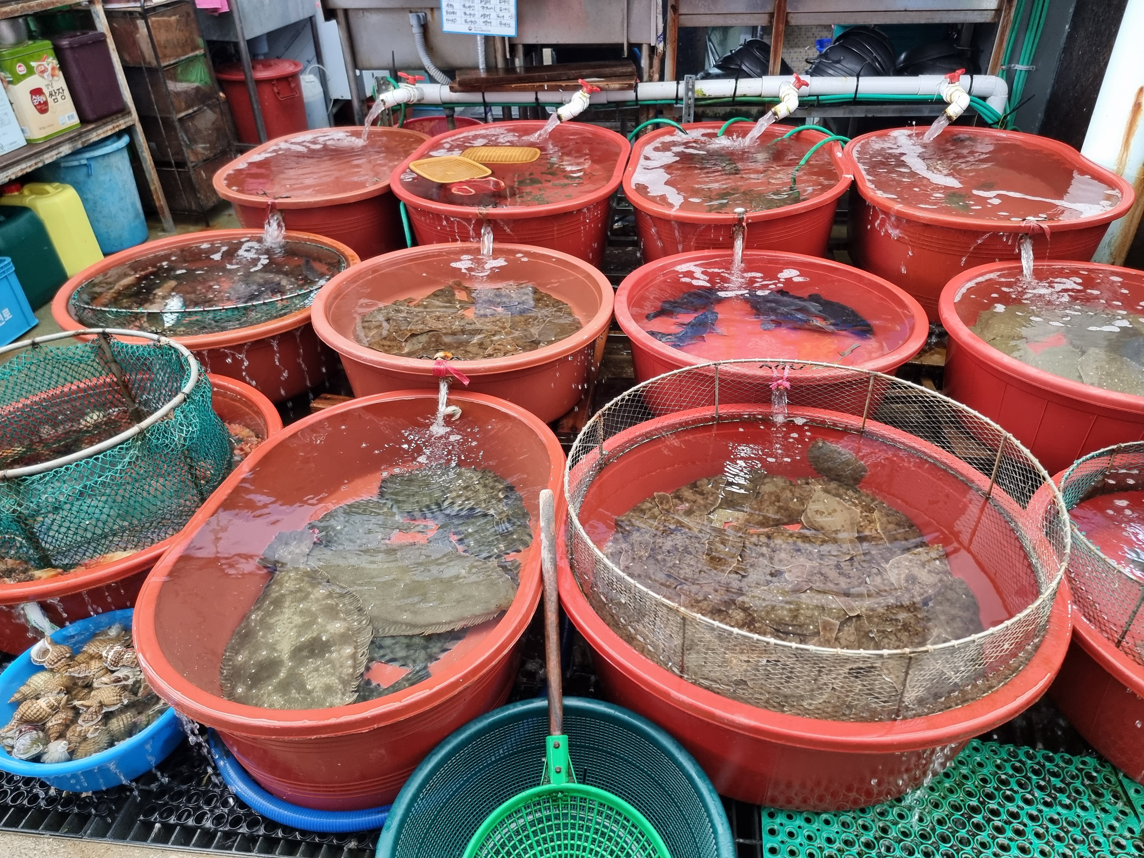 입구에는 이렇게 많은 어종의 횟감을 갔다놓고 골라서 가격에 맞춰 먹으면 됩니다.