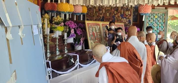 지난 7월29일 귀국해 조계종 불교중앙박물관에 보관돼있다가 오늘 신흥사 스님들과 신자들에 의해 극락보전과 명부전에 이운되어 간단히 환영예불을 올렸습니다.