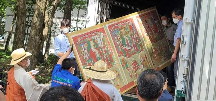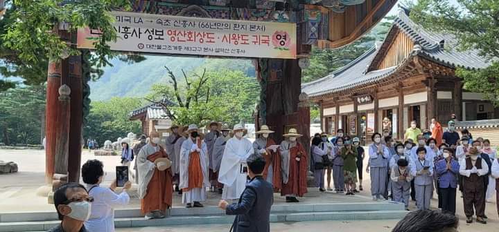 한국전쟁직후 미군에 의해 무단반출되었던 신흥사 영산회상도와 시왕도가 66년만에 오늘(8월28일 오후2시) 신흥사에 되돌아왔습니다.