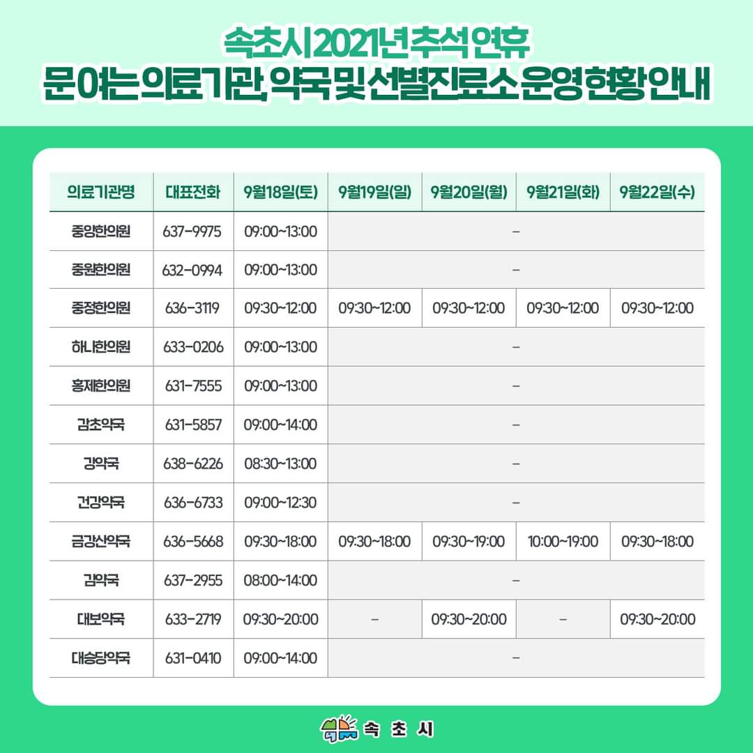 #속초 #속초시 #속초소식 #추석연휴 #추석명절기간 #연휴기간 #문여는의료기관 #문여는약국 #선별진료소 #운영현황 #운영일정
