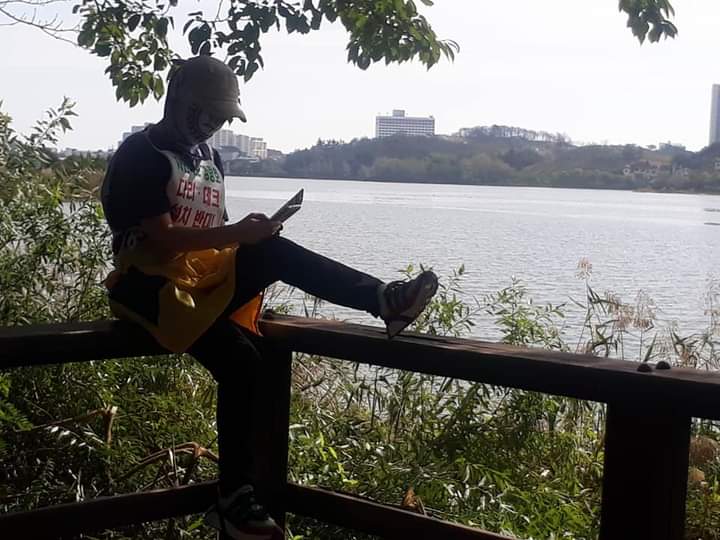 몸자보를 하고 난간에 걸터앉아 편안하게 휴대폰을 들여다보던 낯익은 시민도 만났습니다. 개구리 왕눈이 같았던 윤선생님, 멋진 사진 찍으려고 늦춰진 걸음, 뭐라도 해보려고 나누는 대화, 독바위 이야기 등등