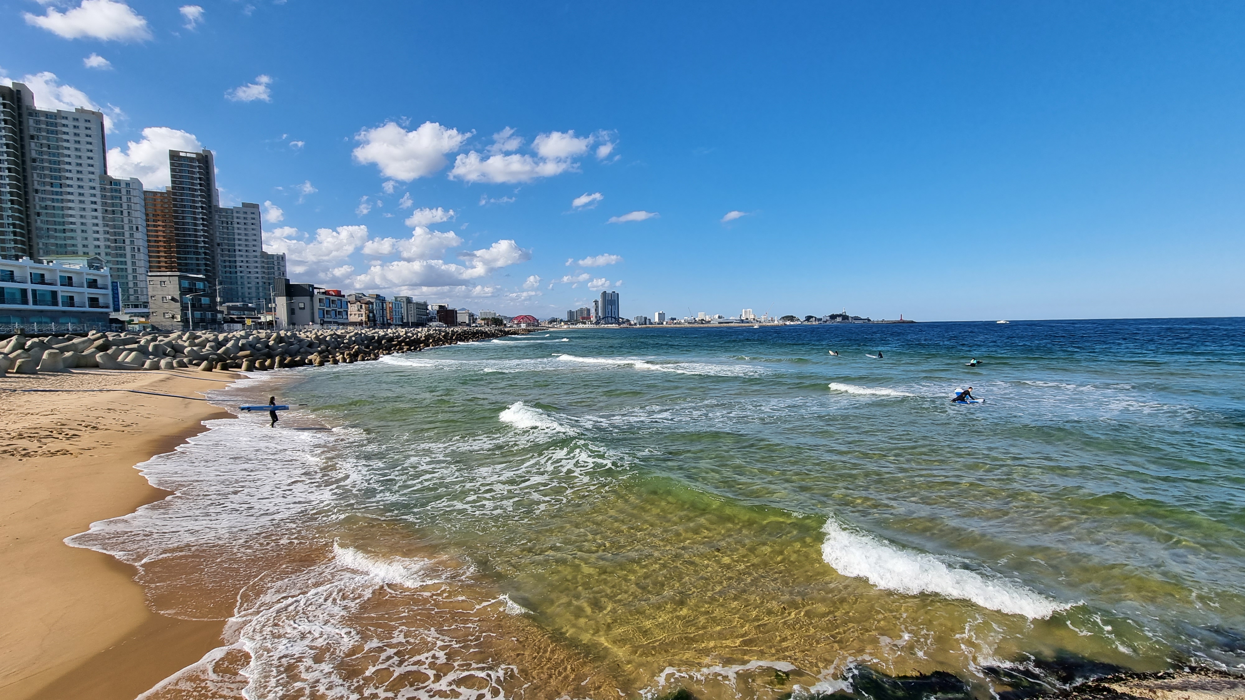 속초해변 풍경입니다. 여름이 아니다 보니, 사람들이 별로 없지만, 속초의 풍경을 즐기기 위해 찾아 오는 여행객들에게는 필수 코스입니다.