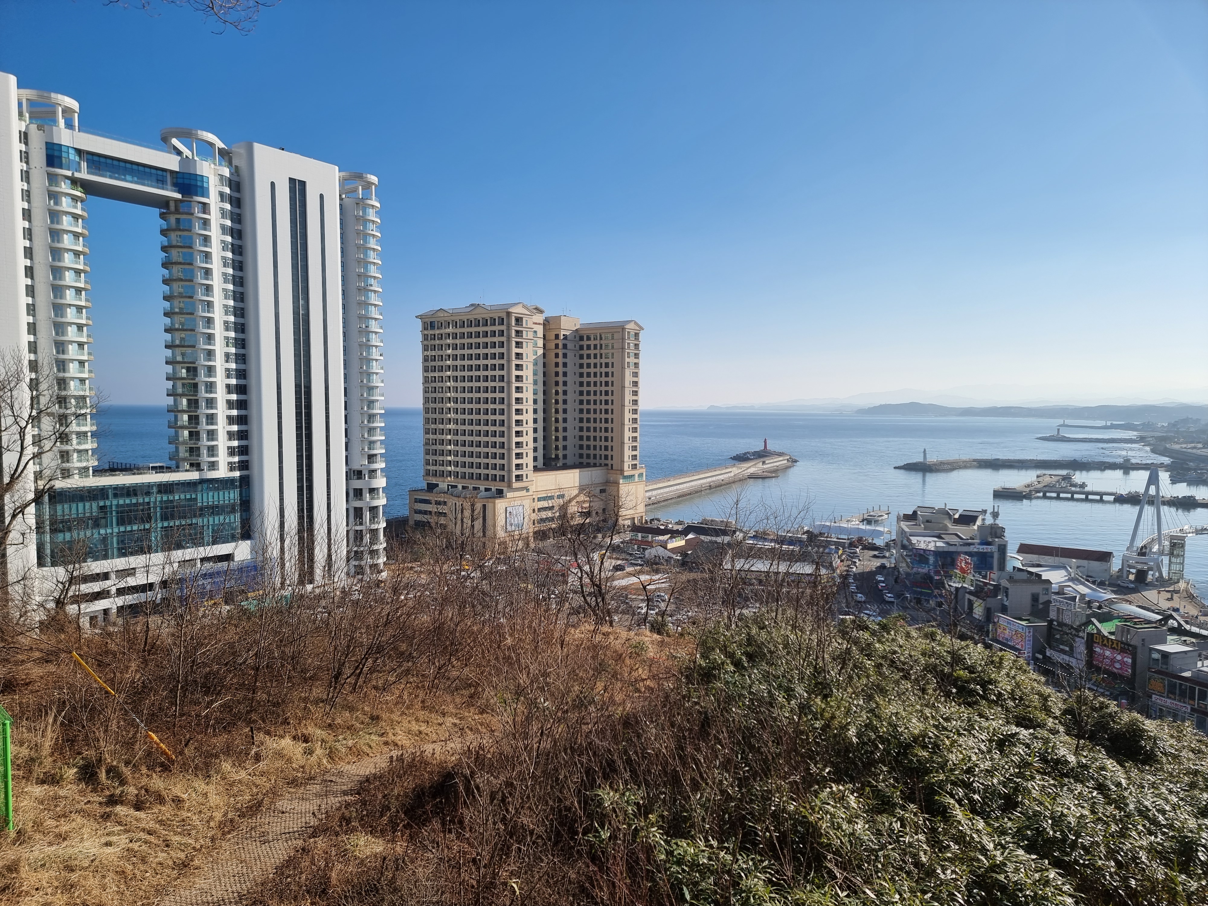 전망대에서 바다 정면을 담아 보았는데요. 높게 들어선 건물이 앞을 가리고 있네요.