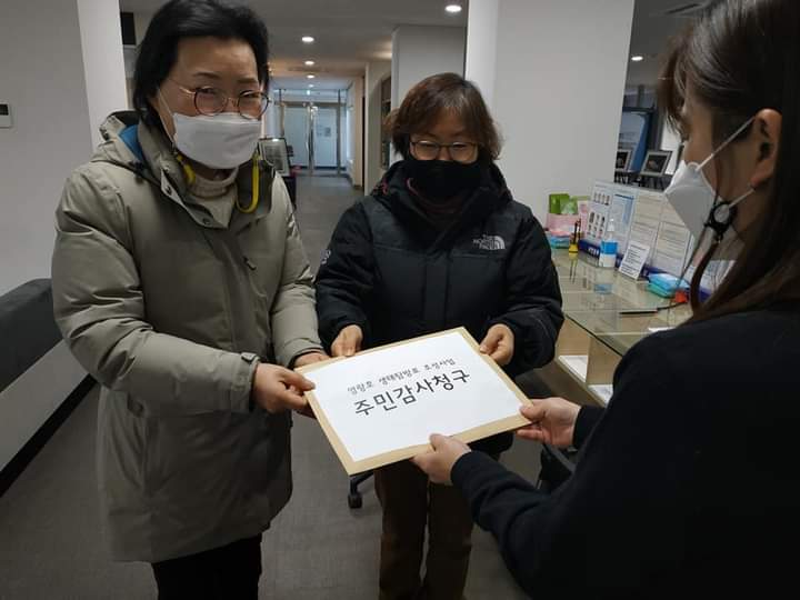 〇 이에 우리는 지방자치법 제16조에 의거해 강원도가속초시의 위법행위에 대해 철저히 규명하고 조치해 줄 것을 요청하는 주민감사청구를 하게 되었습니다. 또한 주민감사청구와 함께 지방자치법 제17조에 따른 주민소송도 진행할 예정입니다.