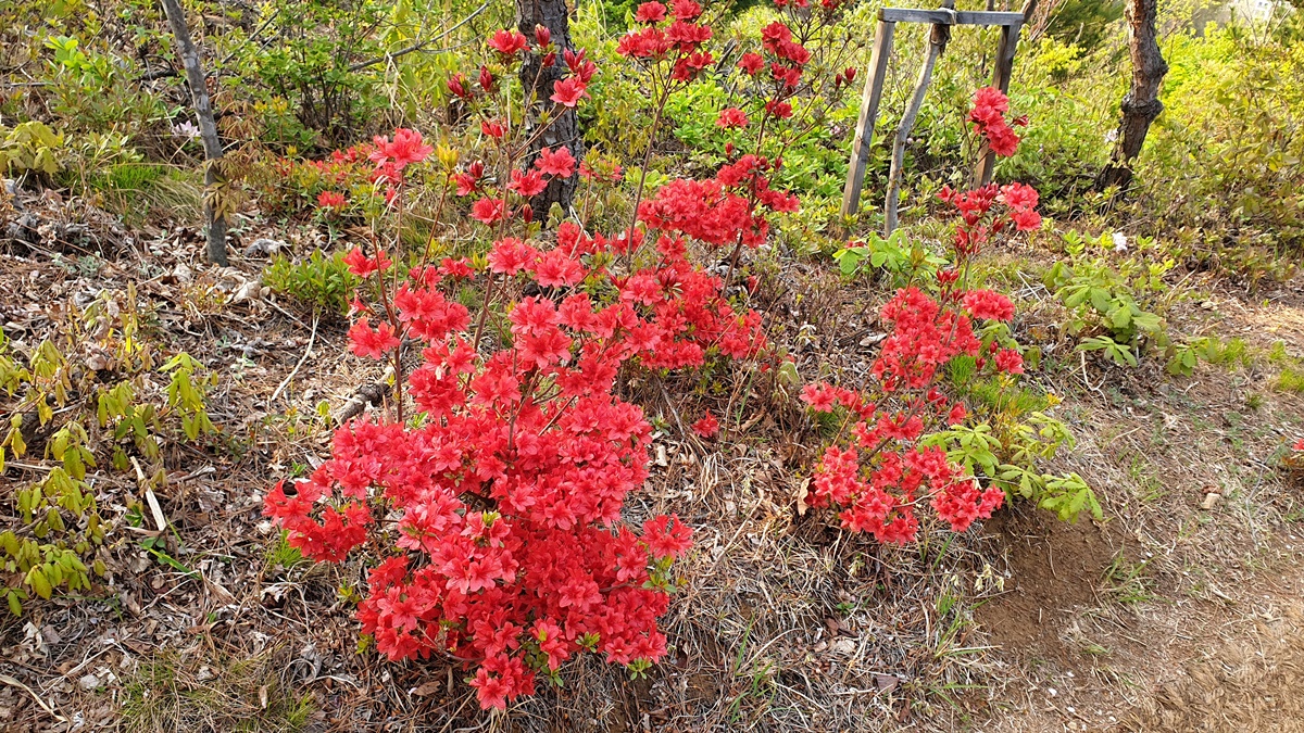 청대산 정상에 영산홍꽃나무로 꽃밭을 만들어 놓았습니다. 지금 피기 시작하는데 다 피면 정말 이쁘겟지요.^^