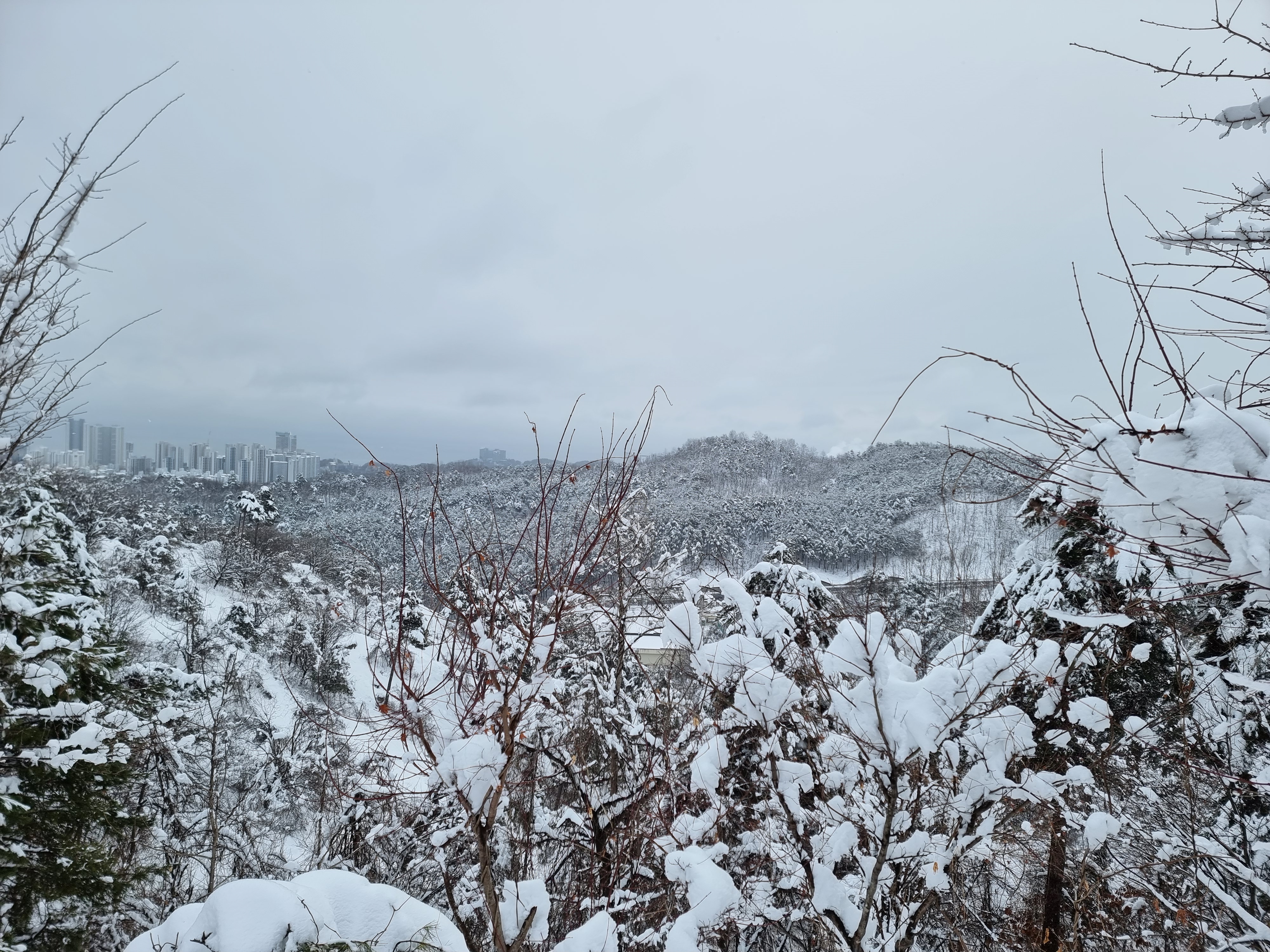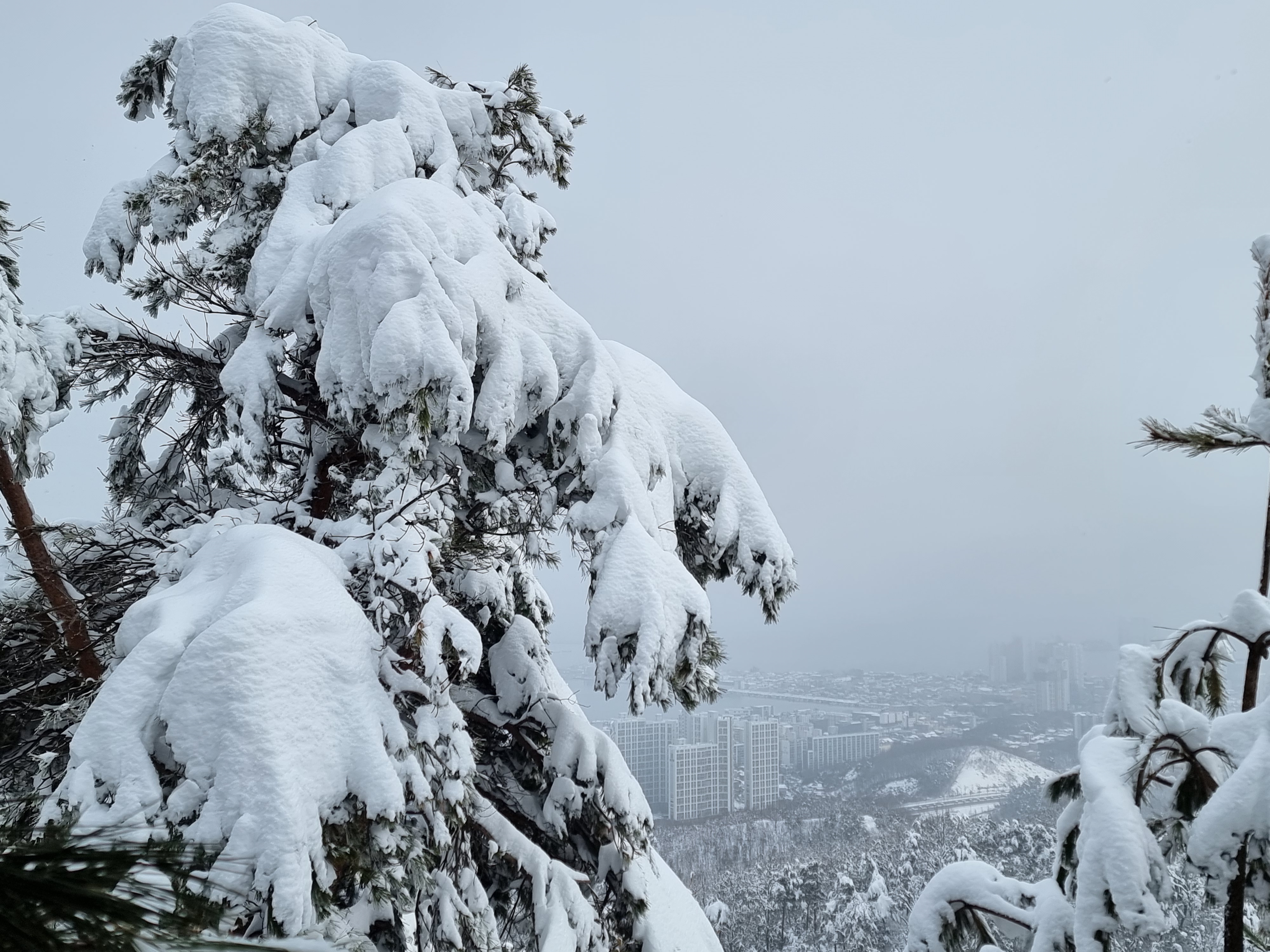 속초 청대산 설경입니다. 밤새 눈이 날리더니 온 세상이 하얗게 변해 있네요.