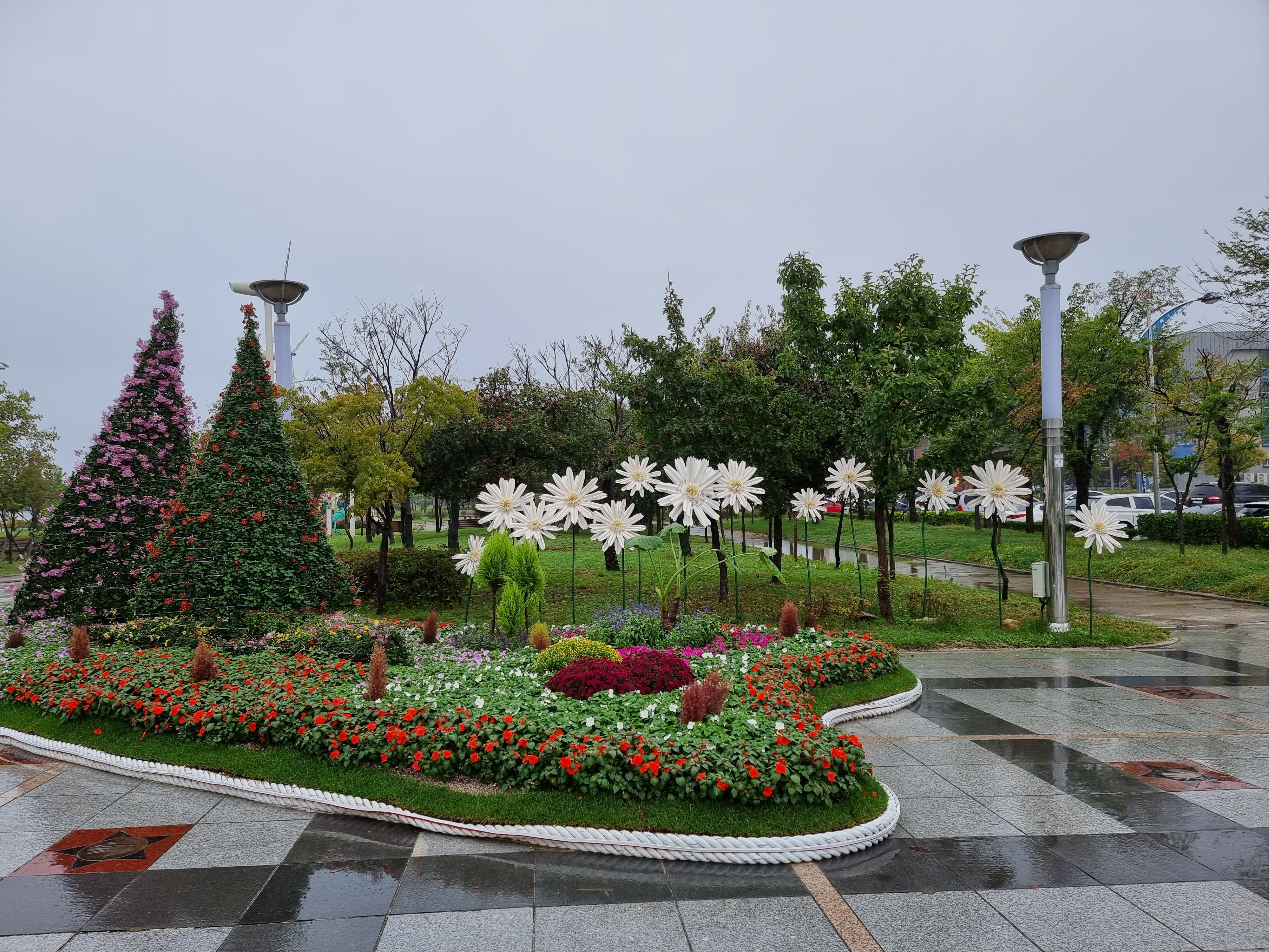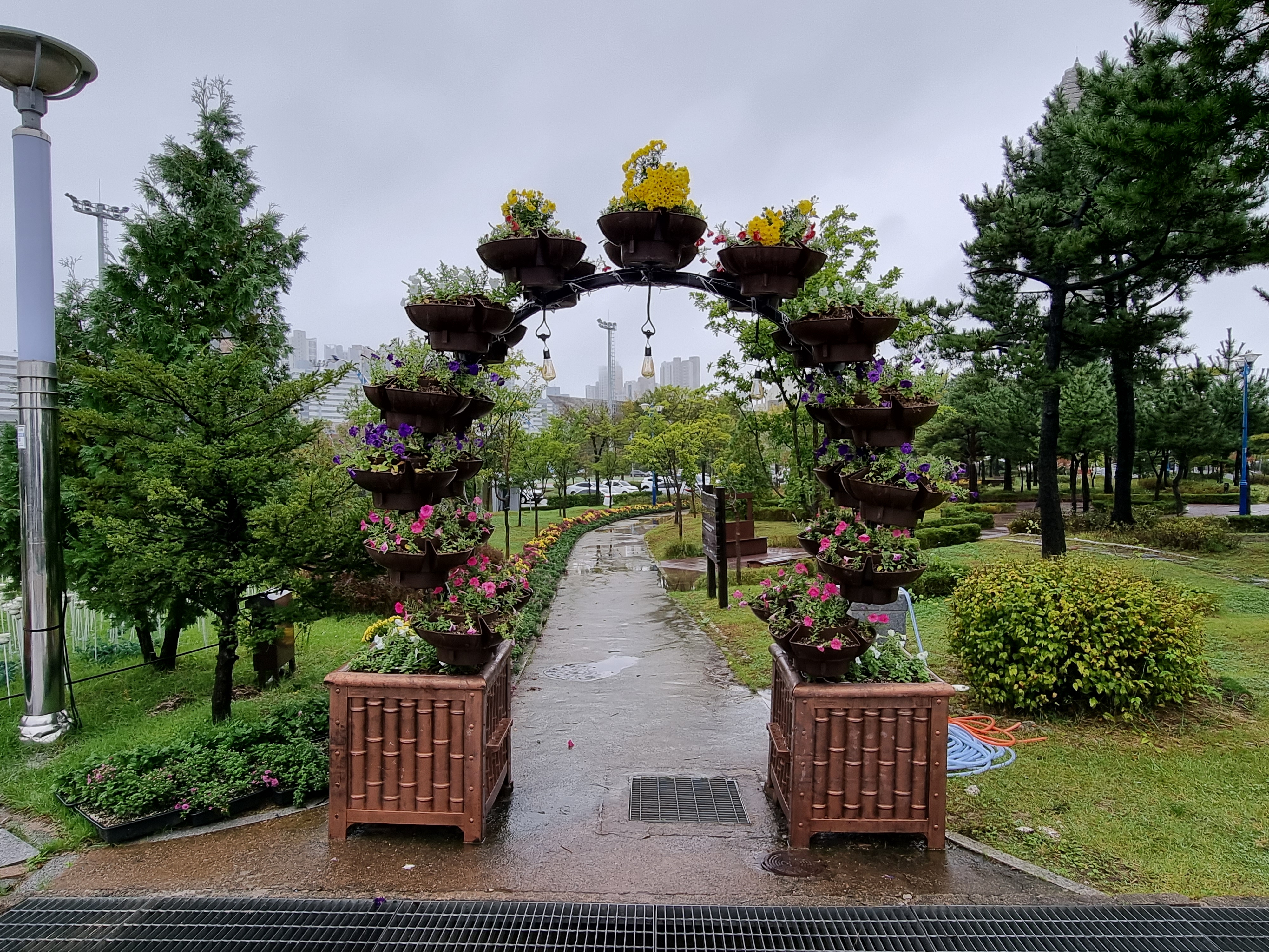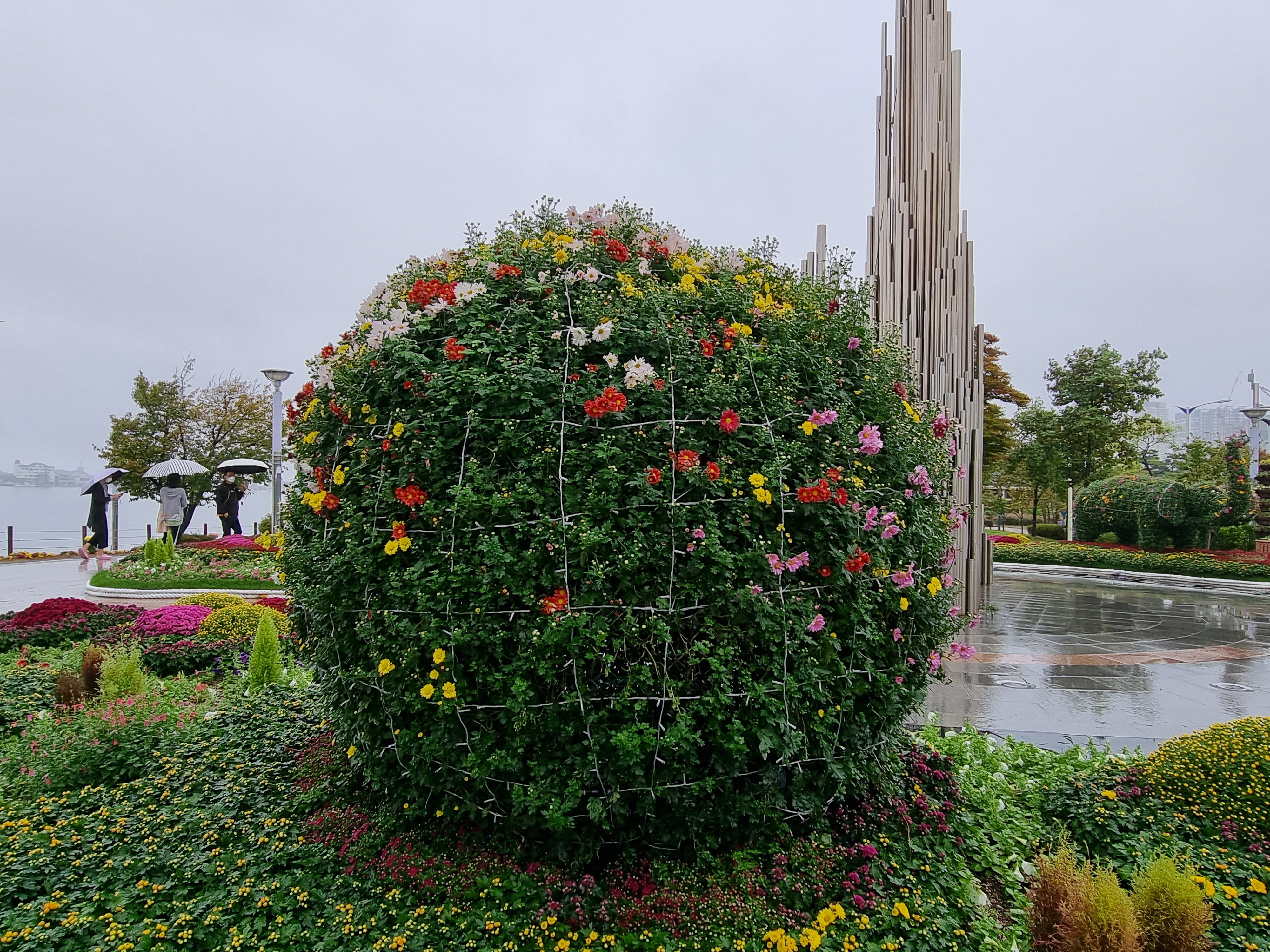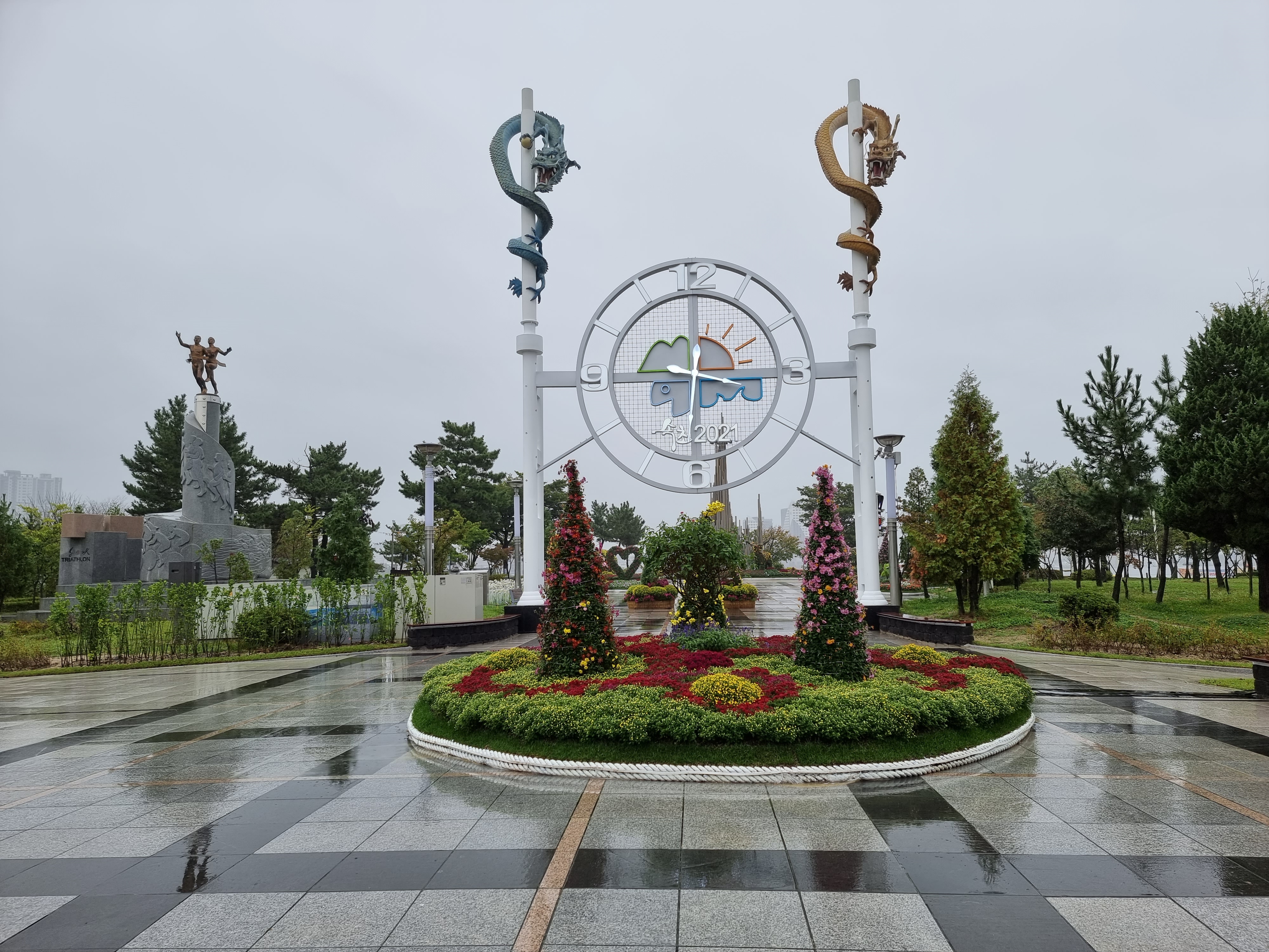 청초호수공원에 있는 조형물입니다. 주위에 국화꽃으로 단장하여 국화꽃으로 만든 조형물이 멋지게 자리를 잡고 있습니다.