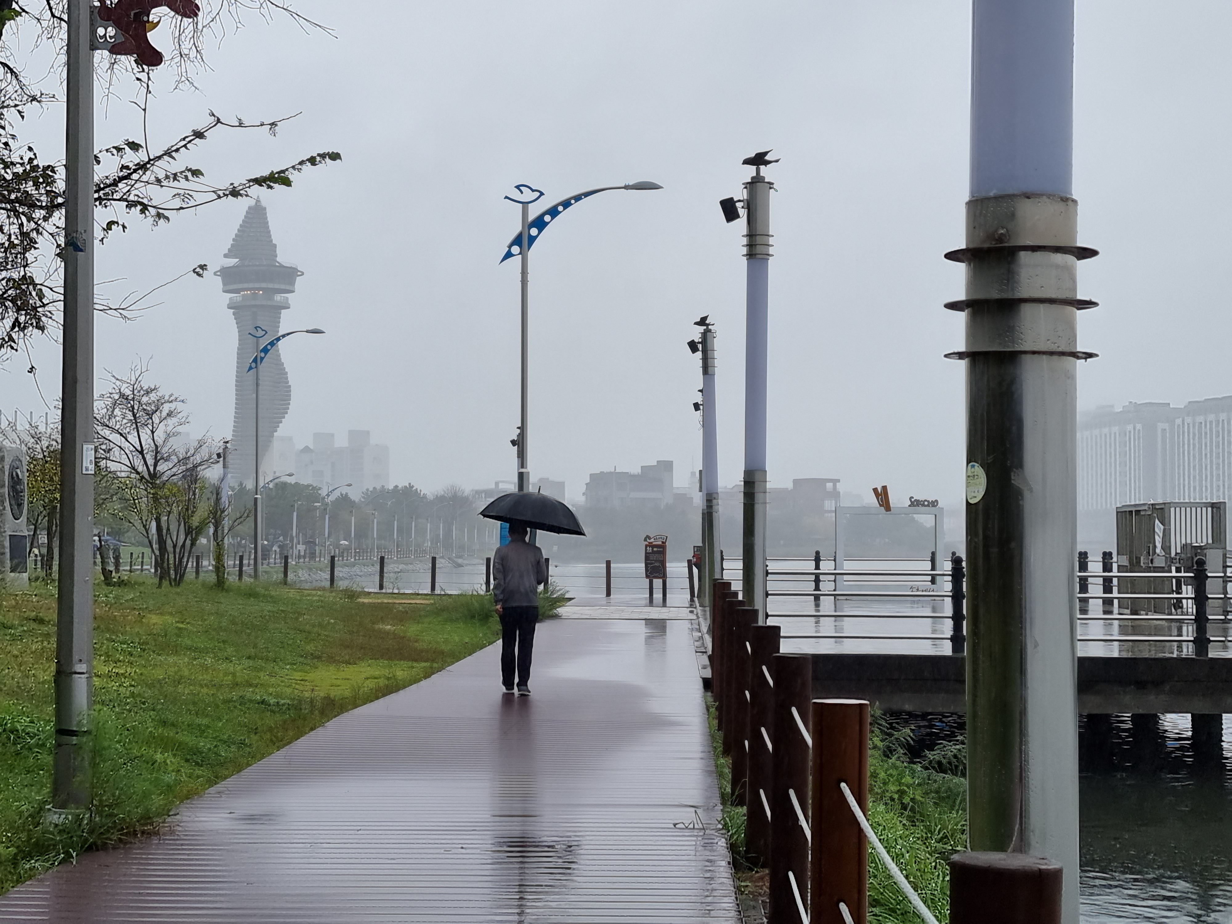 일주일 내내 운동 삼아 움직이지도 못하고 있다가 답답하여 우산을 들고 엑스포탑이 있는 청초호수공원에 나가 보았습니다. 우산을 쓰고 부슬부슬 내리는 호숫가를 걷는 것도 기분이 나쁘지는 않습니다. 오히려 오랫 만에 빗속을 걷다보니 옛날 생각도 나도 기분이 좋아 발걸음도 가볍습니다.