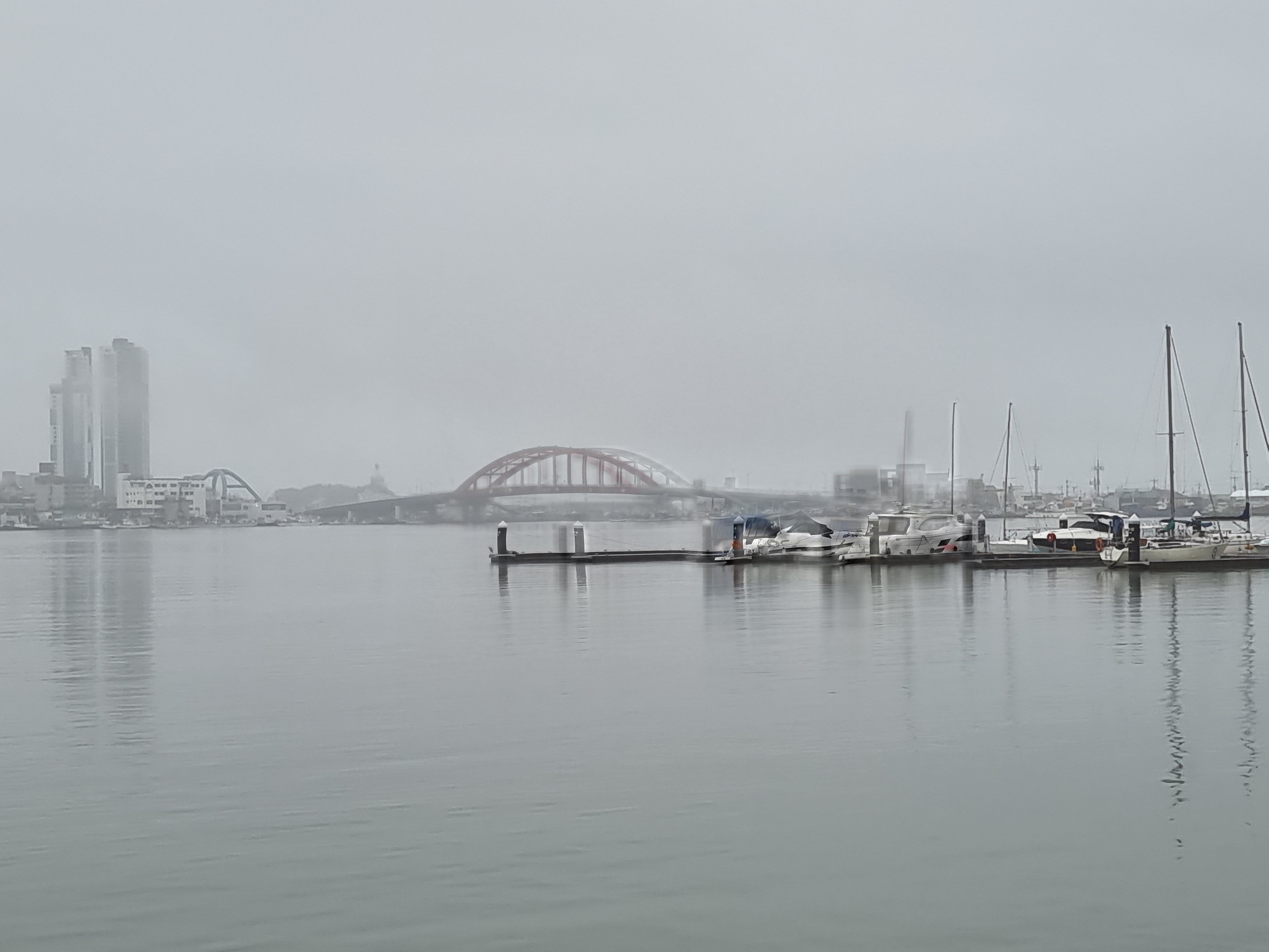 안개에 싸인 청초호가 뿌옇게 보이는게 신비롭기도 합니다.