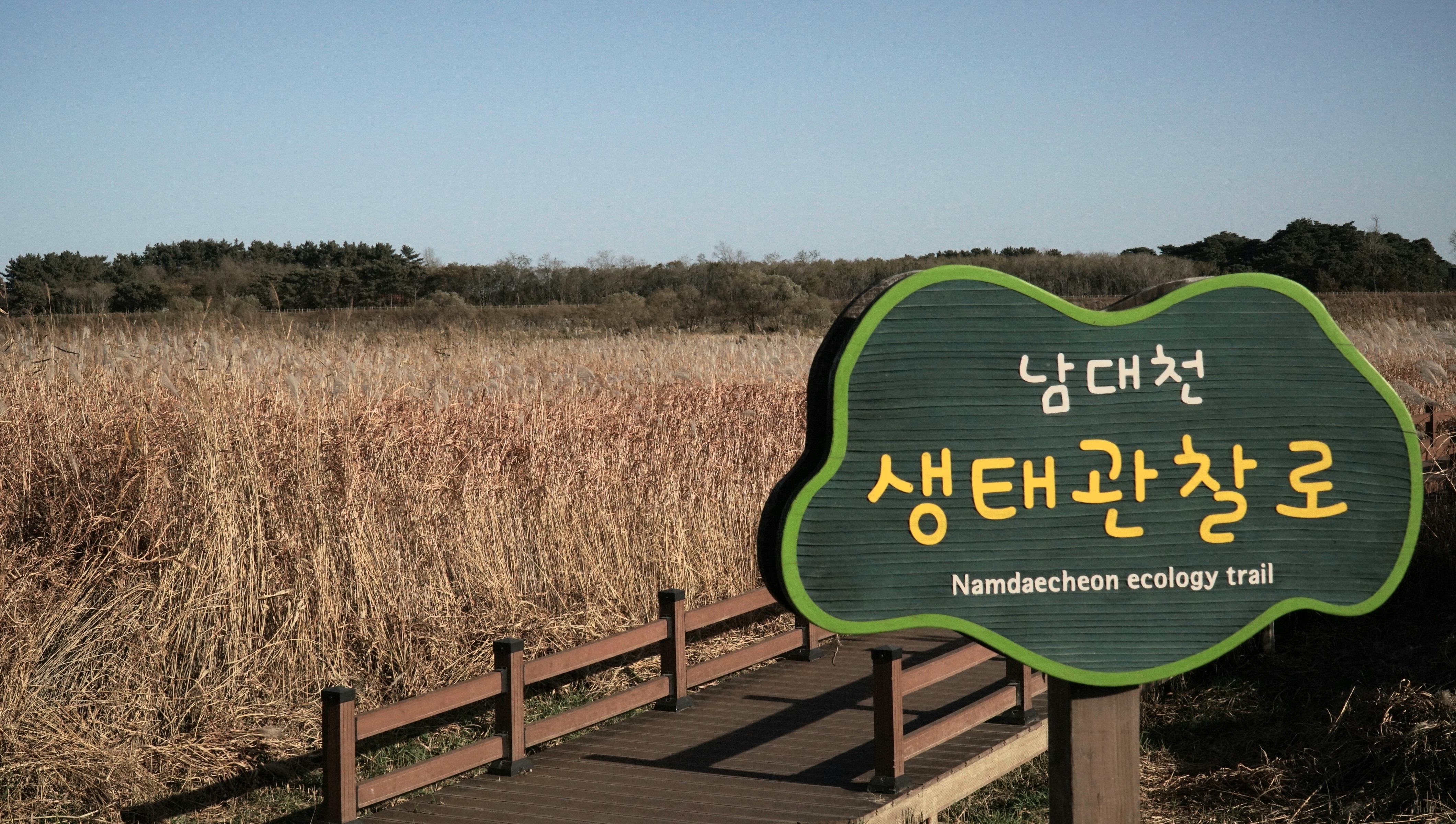 남대천 생태관찰 표지판 뒤로는 억새가 털이 다 떨어져 뼈대만 남아, 보는이들에게 어쉬움이 있네요