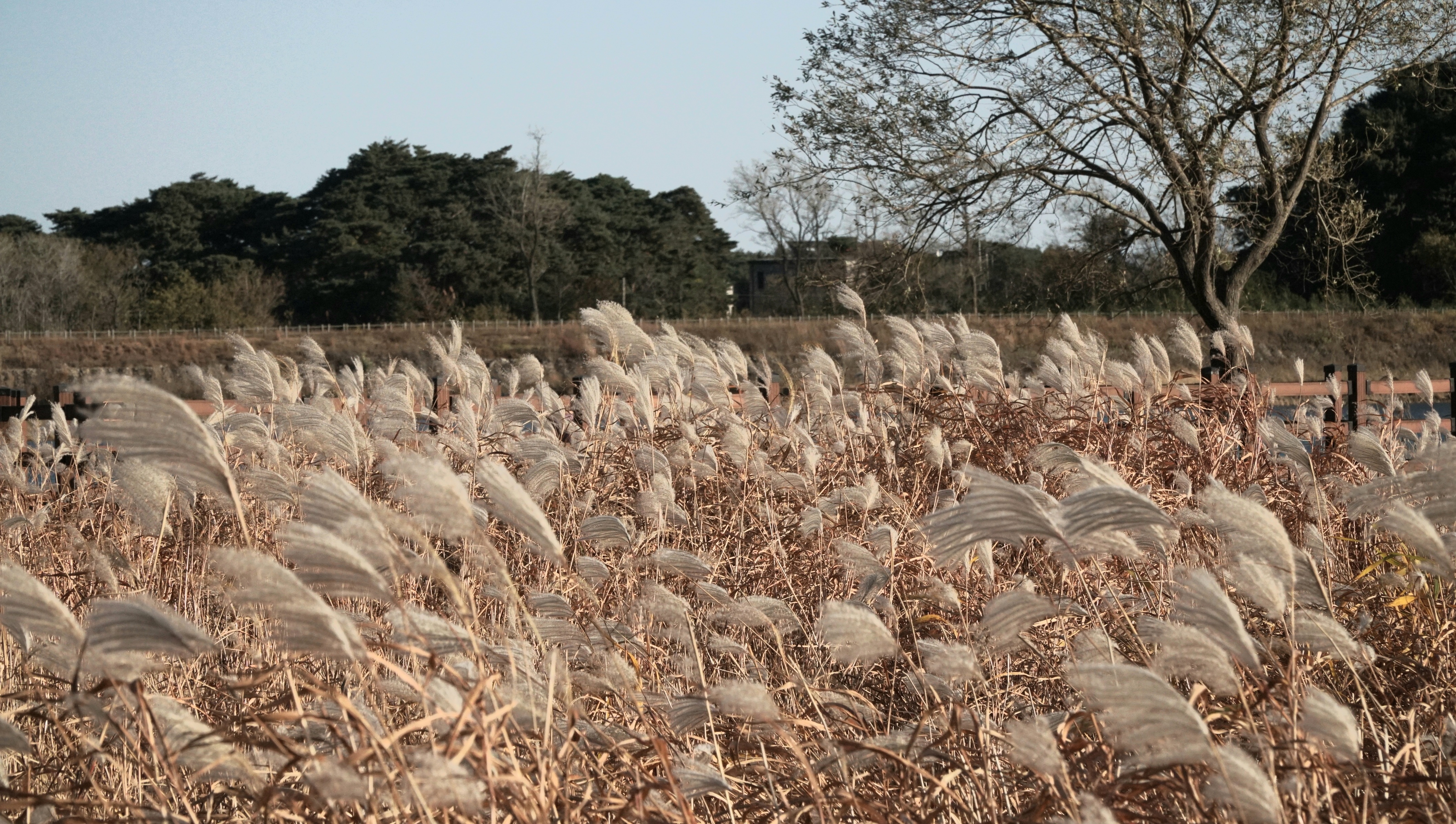 강원도 양양의 남대천에 있는 억새군락지. 늦은 때라 억새꽃들이 많이 떨어져서 대만 남은 곳이 많다.