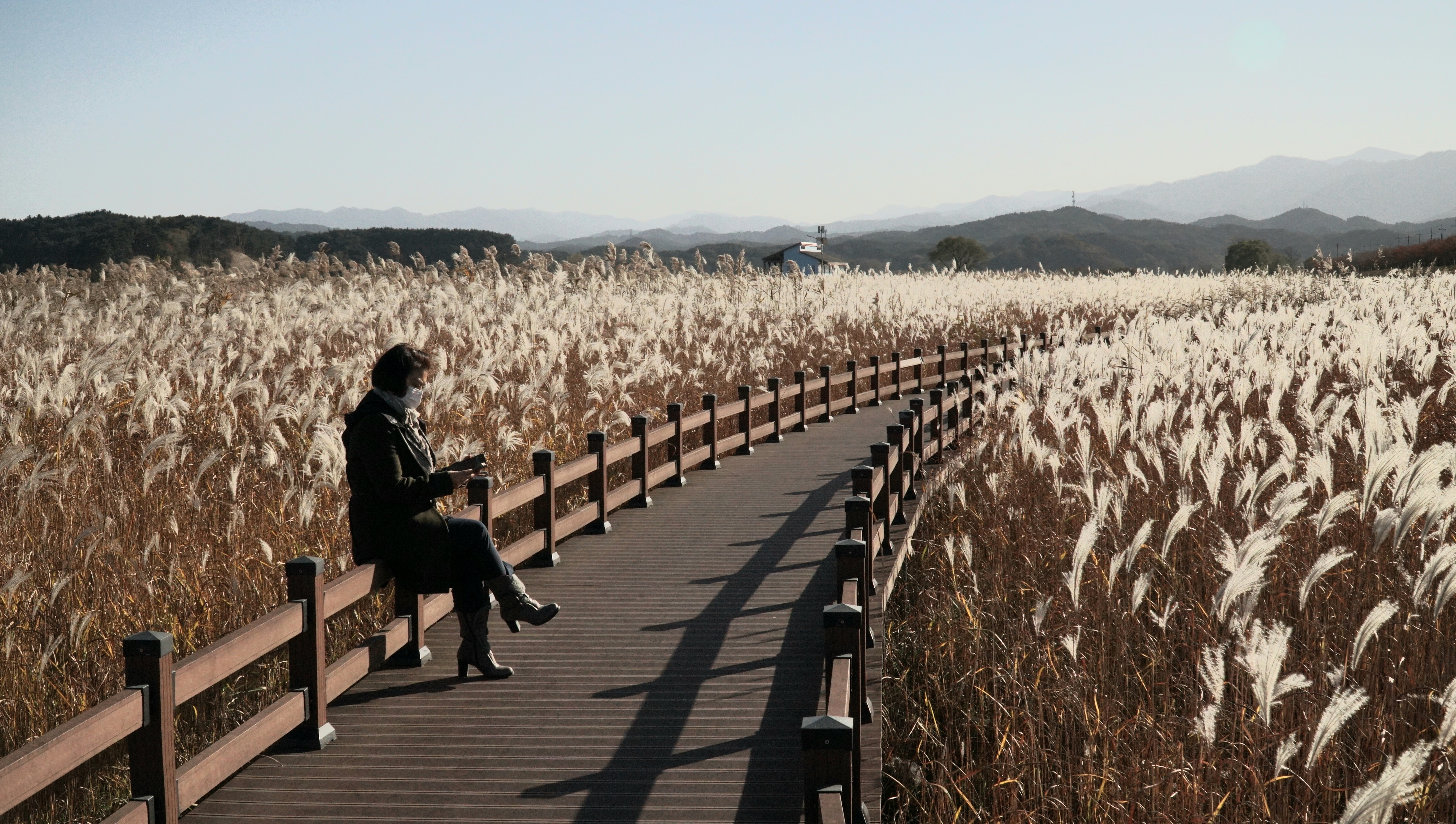 그래도 중간 충간 햇빛을 받아 은빛 물결이 살랑이는 억새의 풍경이 아름답다.