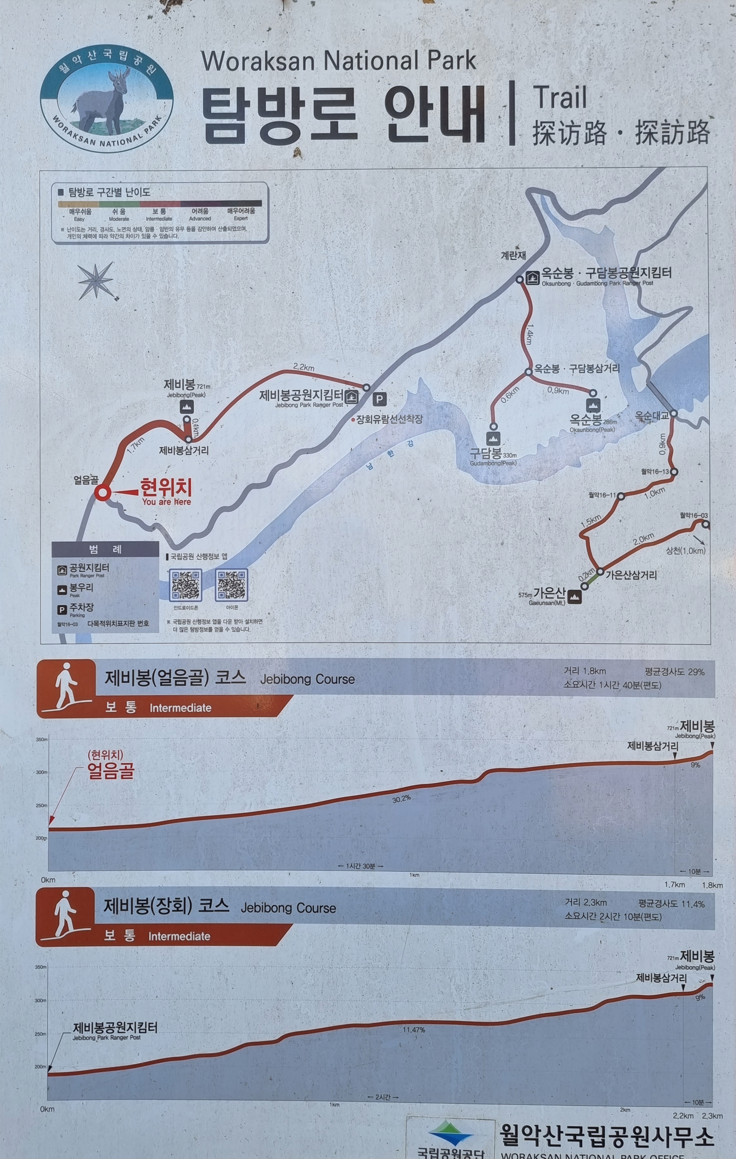 또한 얼음골에서 제비봉탐방지원센터까지의 거리가 멀어 차를 회수하려면 대로를 5.6km정도 걸어가서 차를 타야 하므로 권하고 싶지 않은 코스입니다.