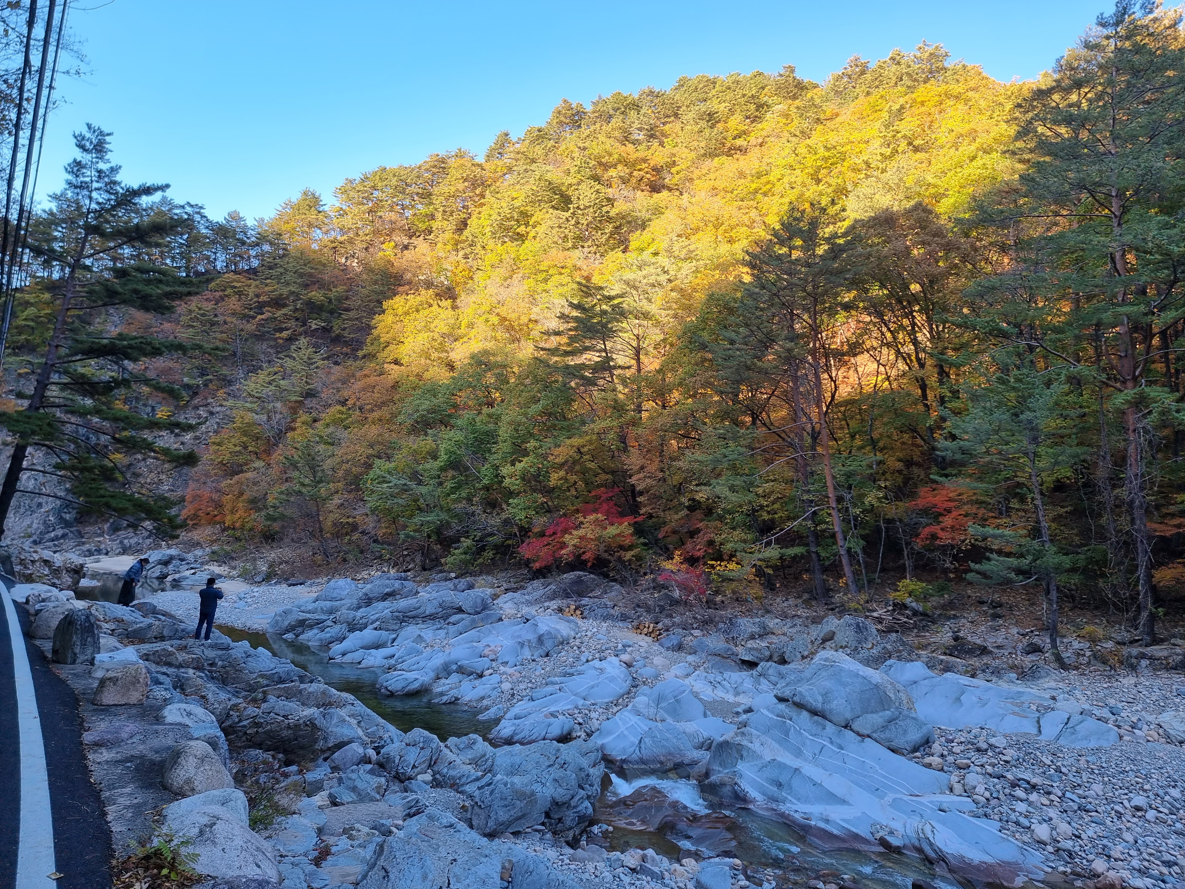 대충 백담사를 구경하고 사람들의 행렬이 나무 길어 기다리는 시간이면 걸어가도 될 것 같고, 버스를 타고 오다 보니 계곡의 단풍이 아름다워서 버스를 타지 않고, 걸어서 가기로 하고 아내와 함께 열심히 걸어 가기로 했습니다.