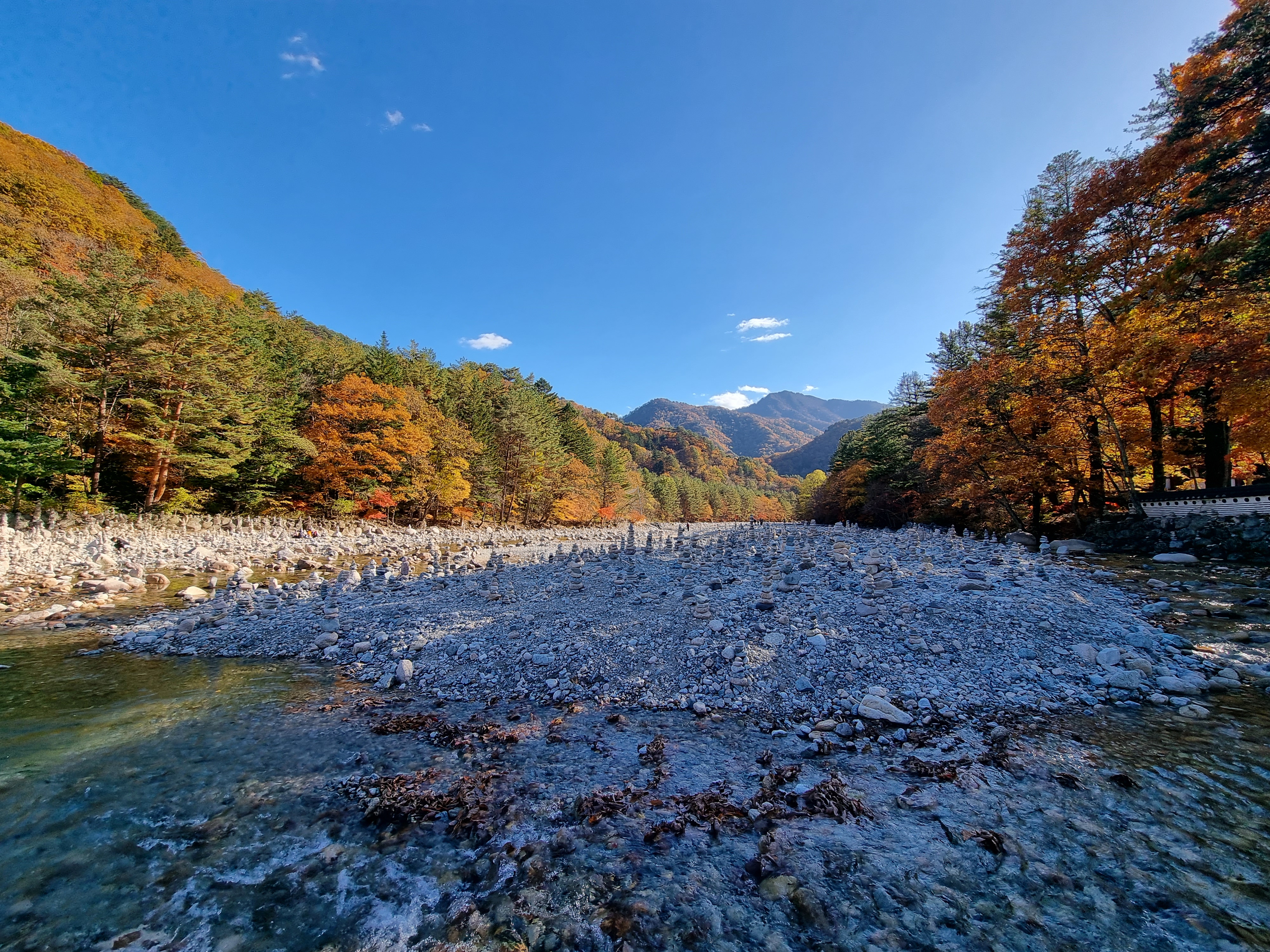 백담사 앞 계곡에는 돌탑들을 쌓아 또 다른 명물로 자리잡고 있네요.