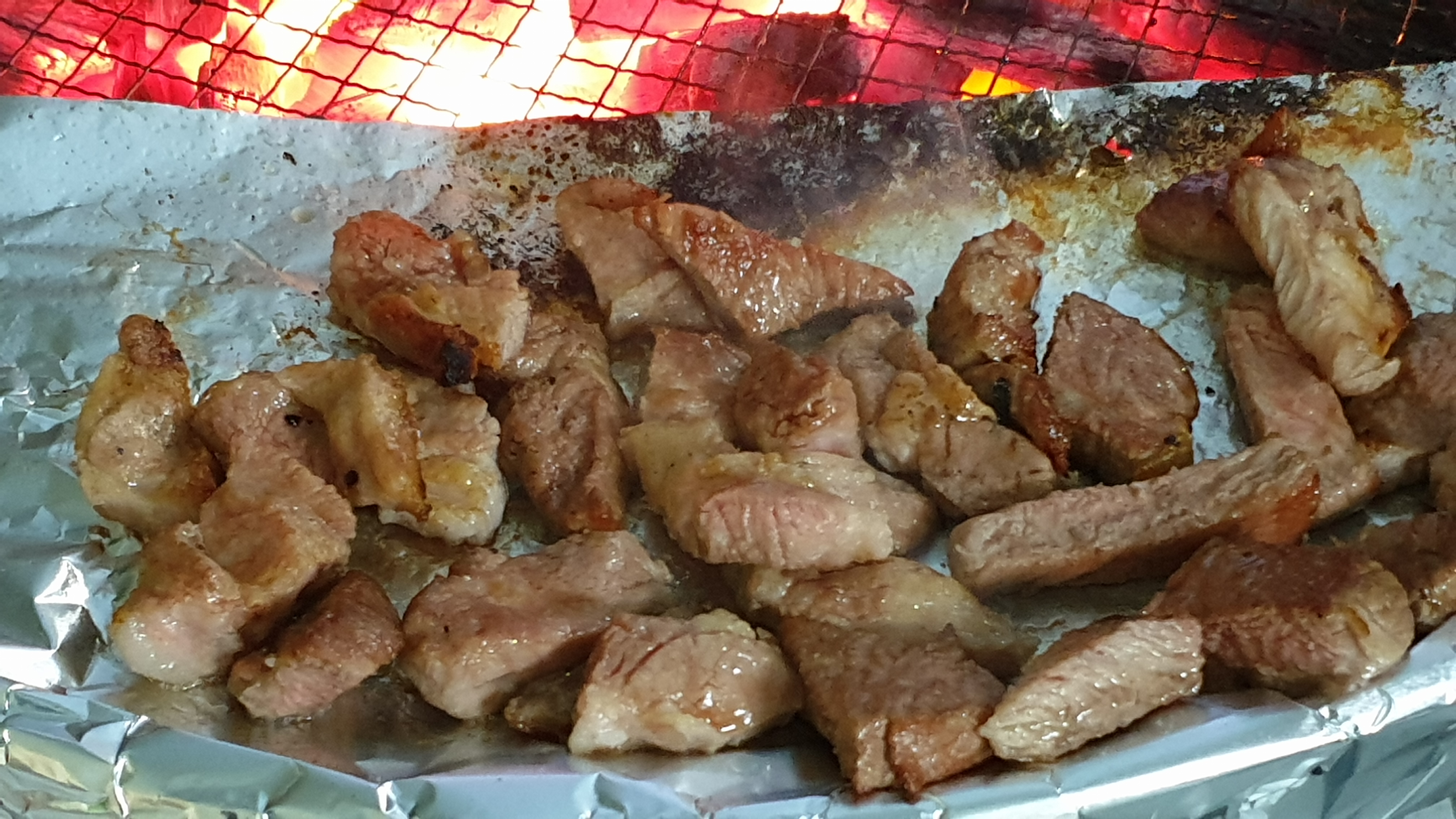고성 쭌카라반에서 회의 마치고 먹는 숯불구이.