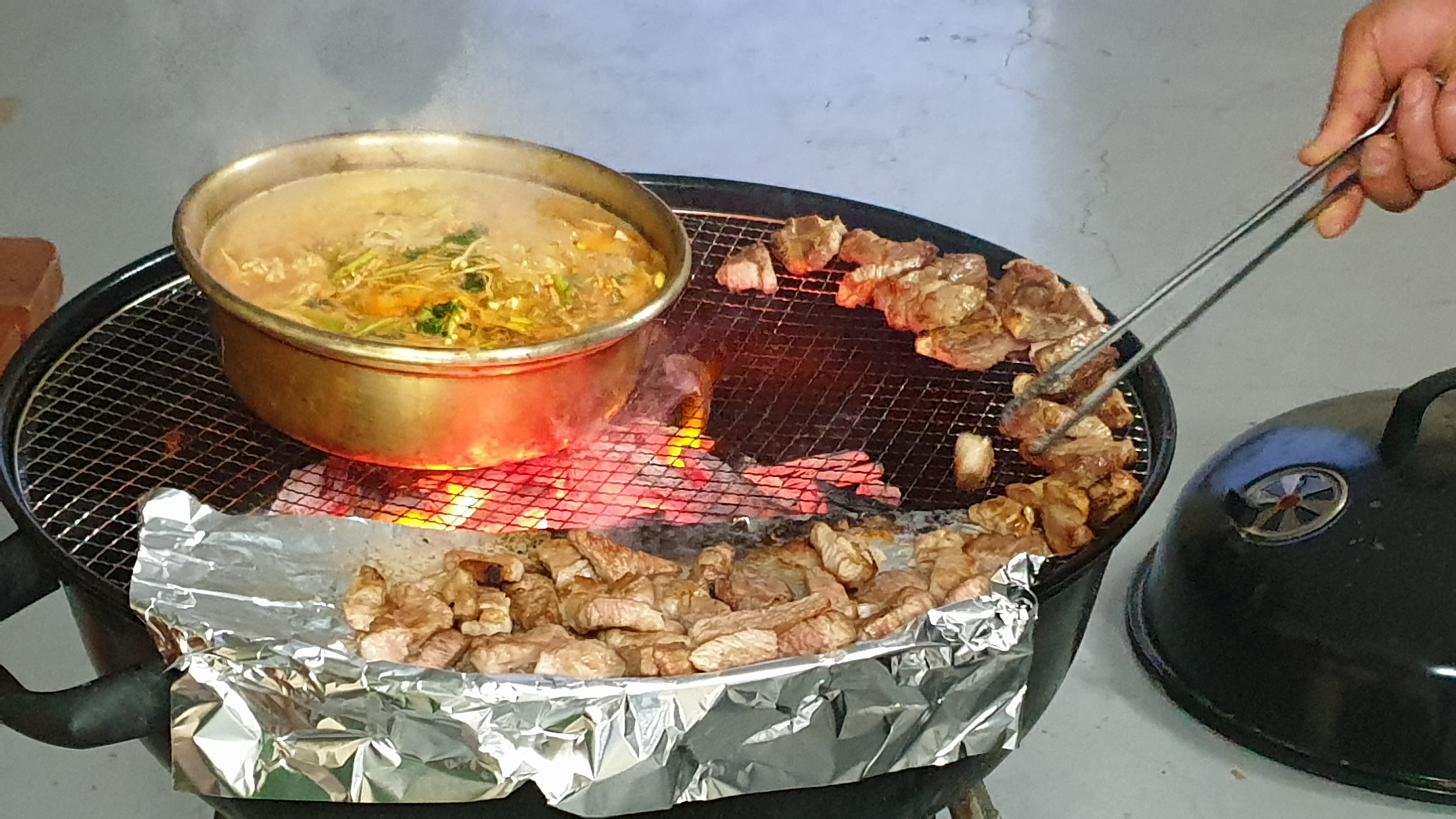 양푼이 동태탕도 올려놓고 바글바글 끓여 먹었는데요.