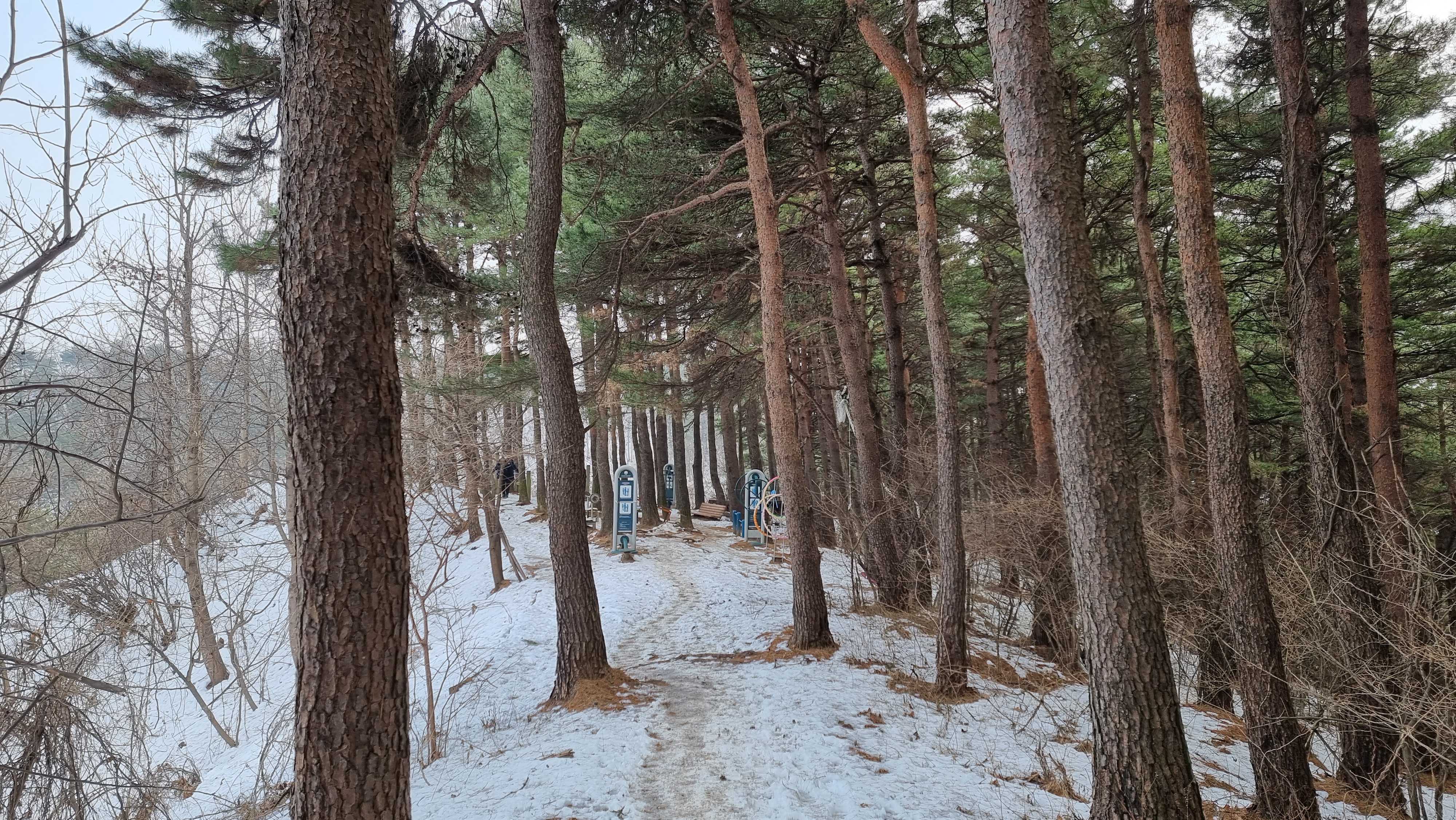 속초시내에 있지만, 아직도 잔설이 남아 사진으로 봐도 겨울임을 느낄 수 있습니다. 그 동안 찬바람이라도 바람의 숨결로 조금씩 녹았었는데, 갑자기 낮에도 영하의 날씨다 보니 꽁꽁 얼어 있습니다.