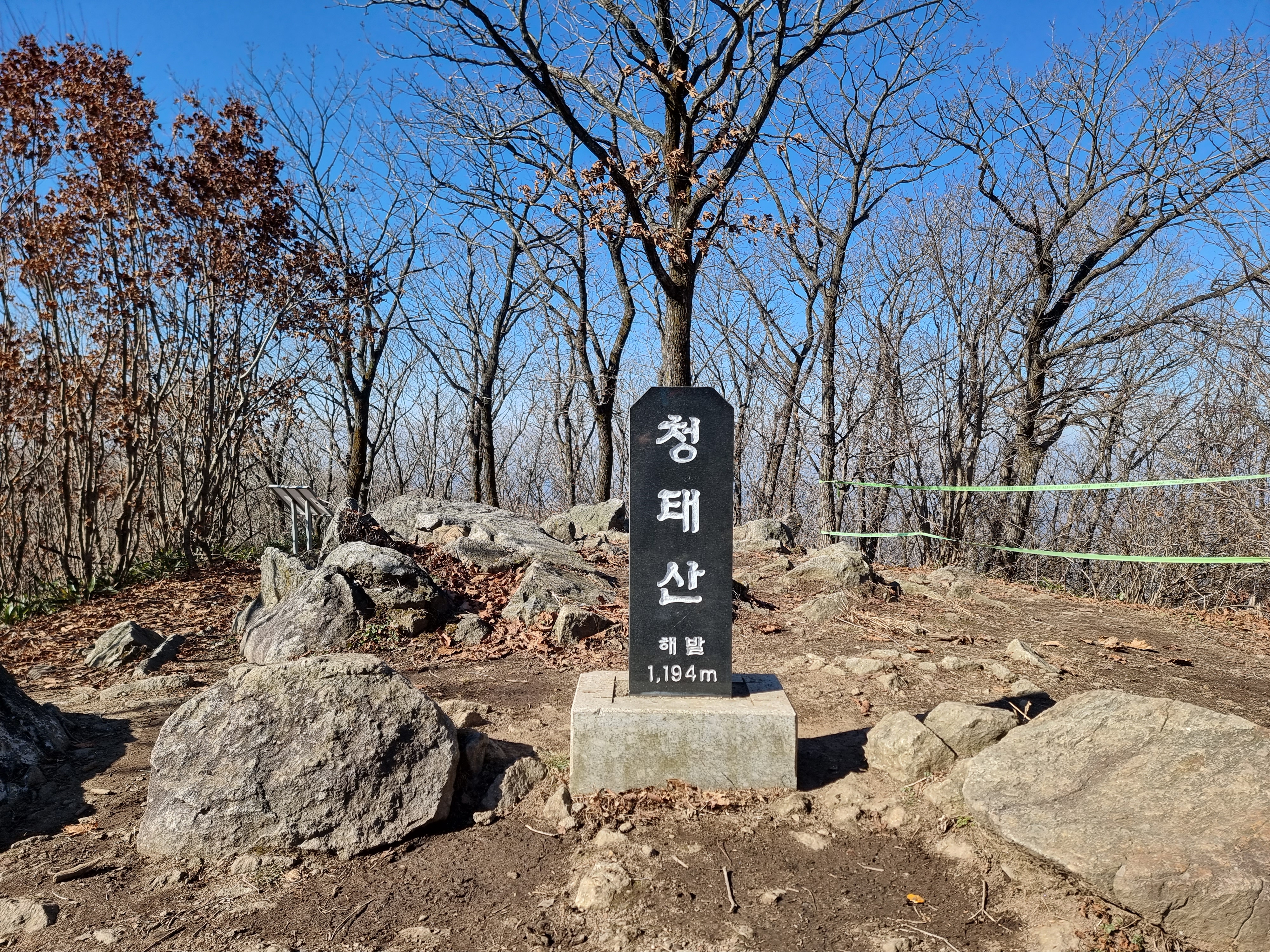 청태산 정상입니다. 잘 만들어진 표지석이 산행객들을 반깁니다. 인증샷을 남기고 하산을 합니다.