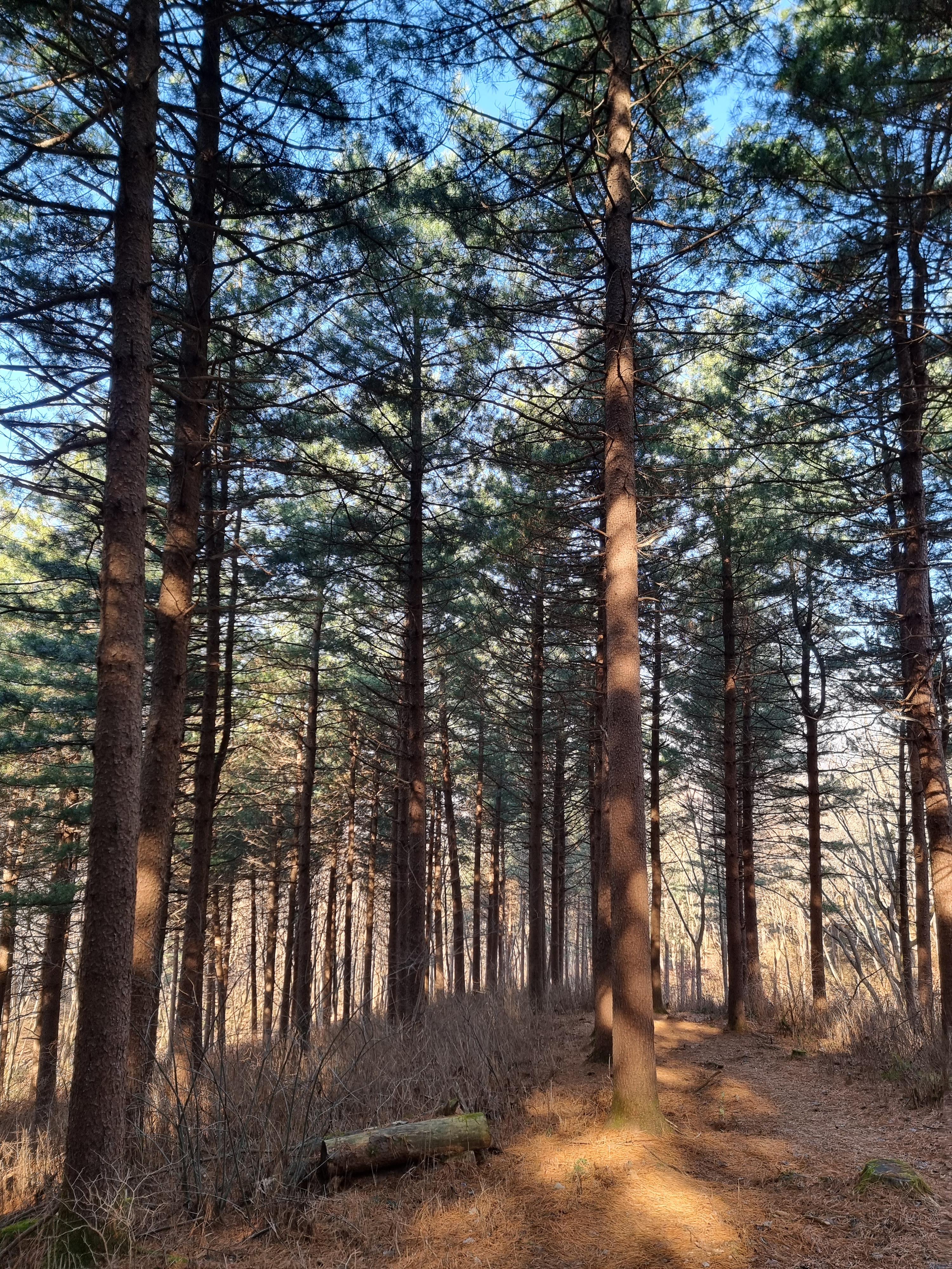 완만한 경사에 쭉쭉 뻗은 나무들이 인상적이네요. 여유롭게 걸을 수 있어 좋네요.