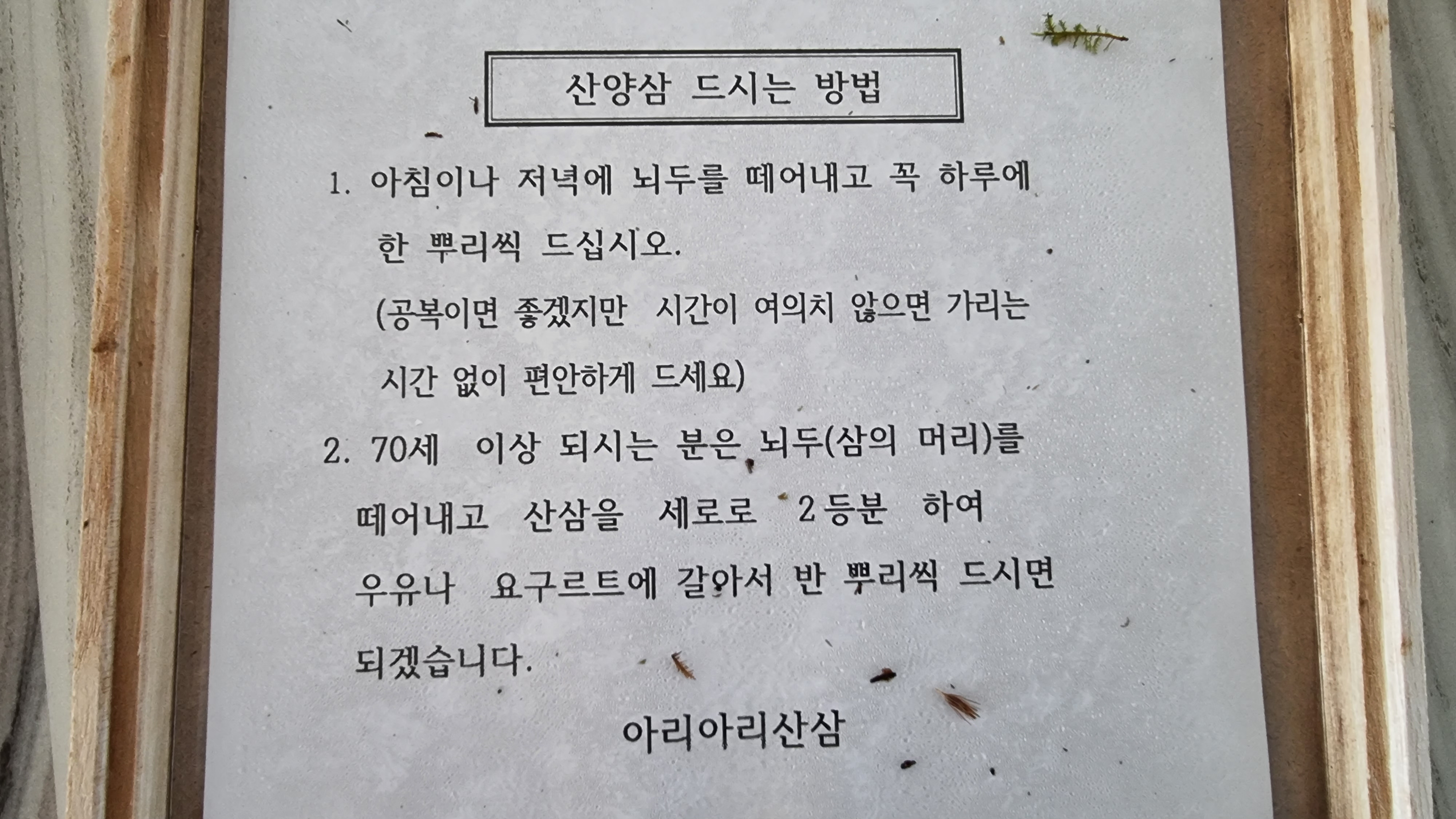 70세 이상 되시는 분은 뇌두를ㅈ제거하고 산삼을 세로로 2등분해서 우유나 요구르트에 갈아서 반뿌리씩 드시면 됩니다고 하네요.