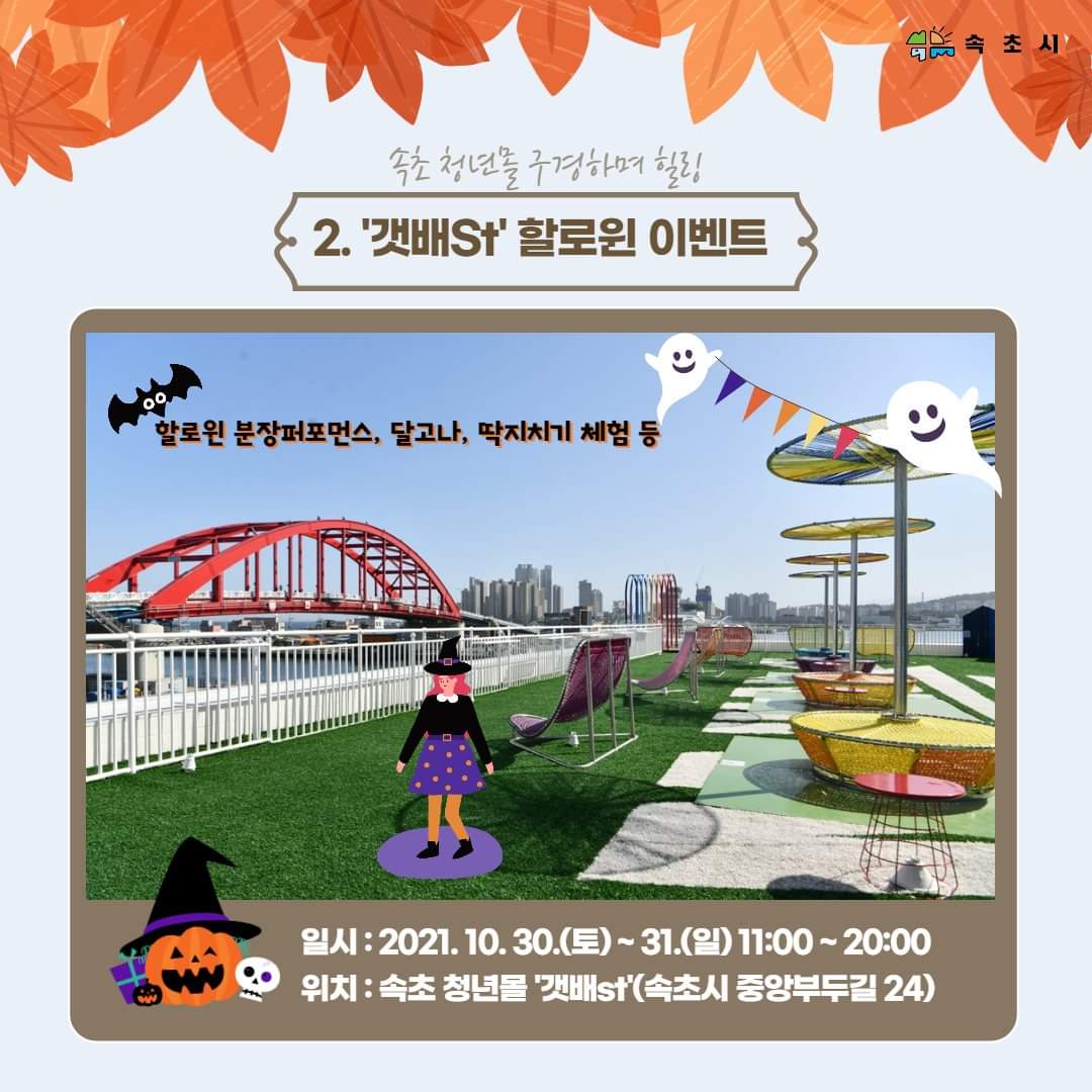 #속초 #속초시 #코로나19 #지친마음힐링 #힐링속초 #청초호유원지 #속초국화전 #속초청년몰 #갯배st #할로윈이벤트 #오징어게임 #깐부 #할로윈 #가을 #단풍 #거미 #허각 #시월의마지막밤콘서트 #속초가볼만한곳 #속초여행 #속초핫플레이스