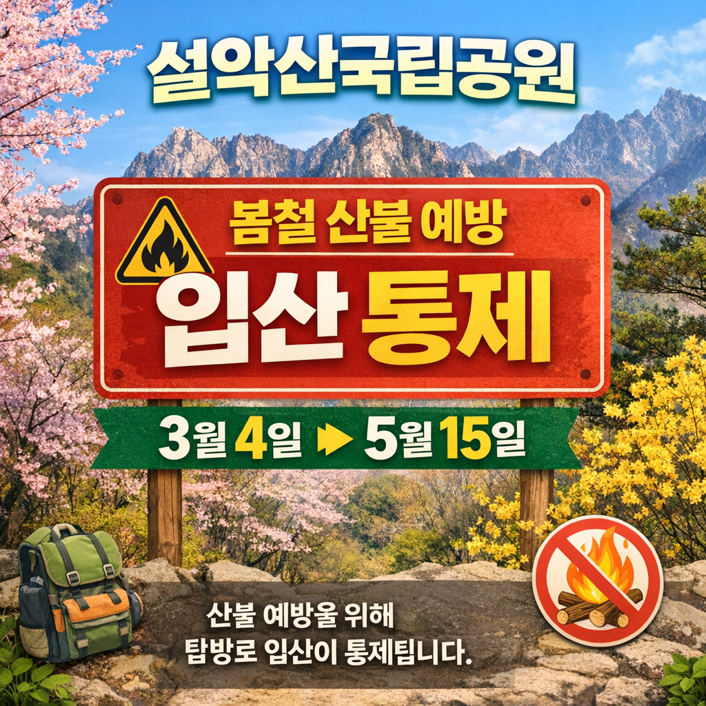 3월 4일부터 5월 15일까지 설악산국립공원 봄철 산불 예방을 위해 등산로 입산 통제합니다.