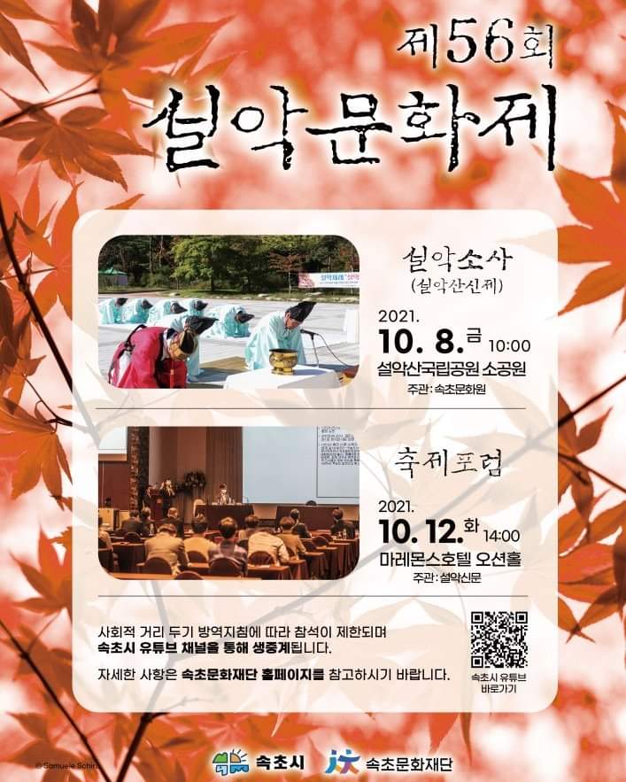 또한 설악문화제의 역사기록 아카이빙을 위한 설악문화제 옛 사진 공모을 9월 15일부터 10월 15일까지 진행합니다.