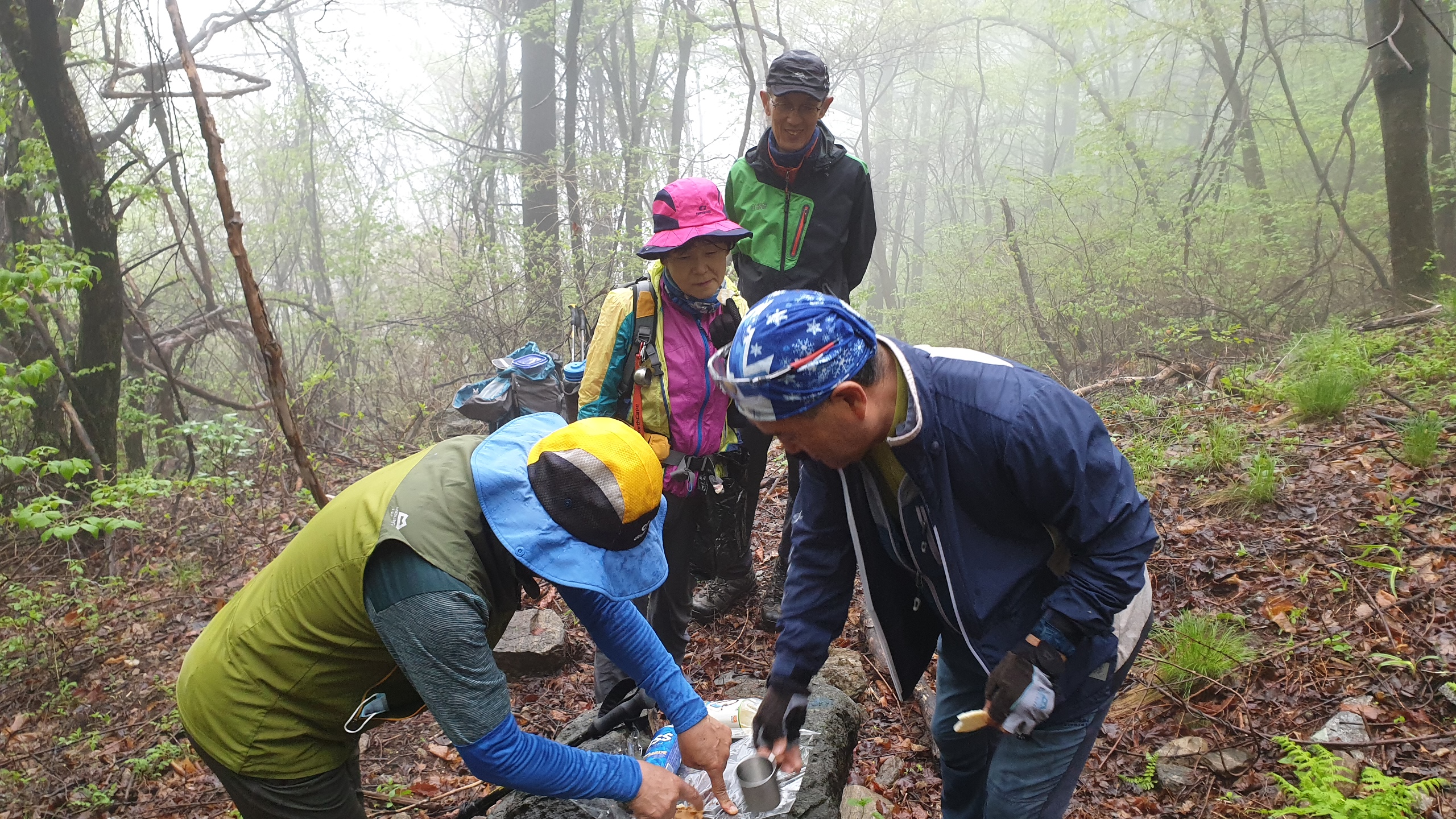 산행을 하며 다행이 비는 오지 않았으나, 안개구름이 잔뜩끼여, 살랑살랑 부는 바람에 흘러 지나가다 나무가지와 풀에 달라 붙어 물방울이 되어 툭툭~~ 떨어지고, 숲을 젖히고, 땅에 내려 앉아 땅을 축축하게 젖힌다.