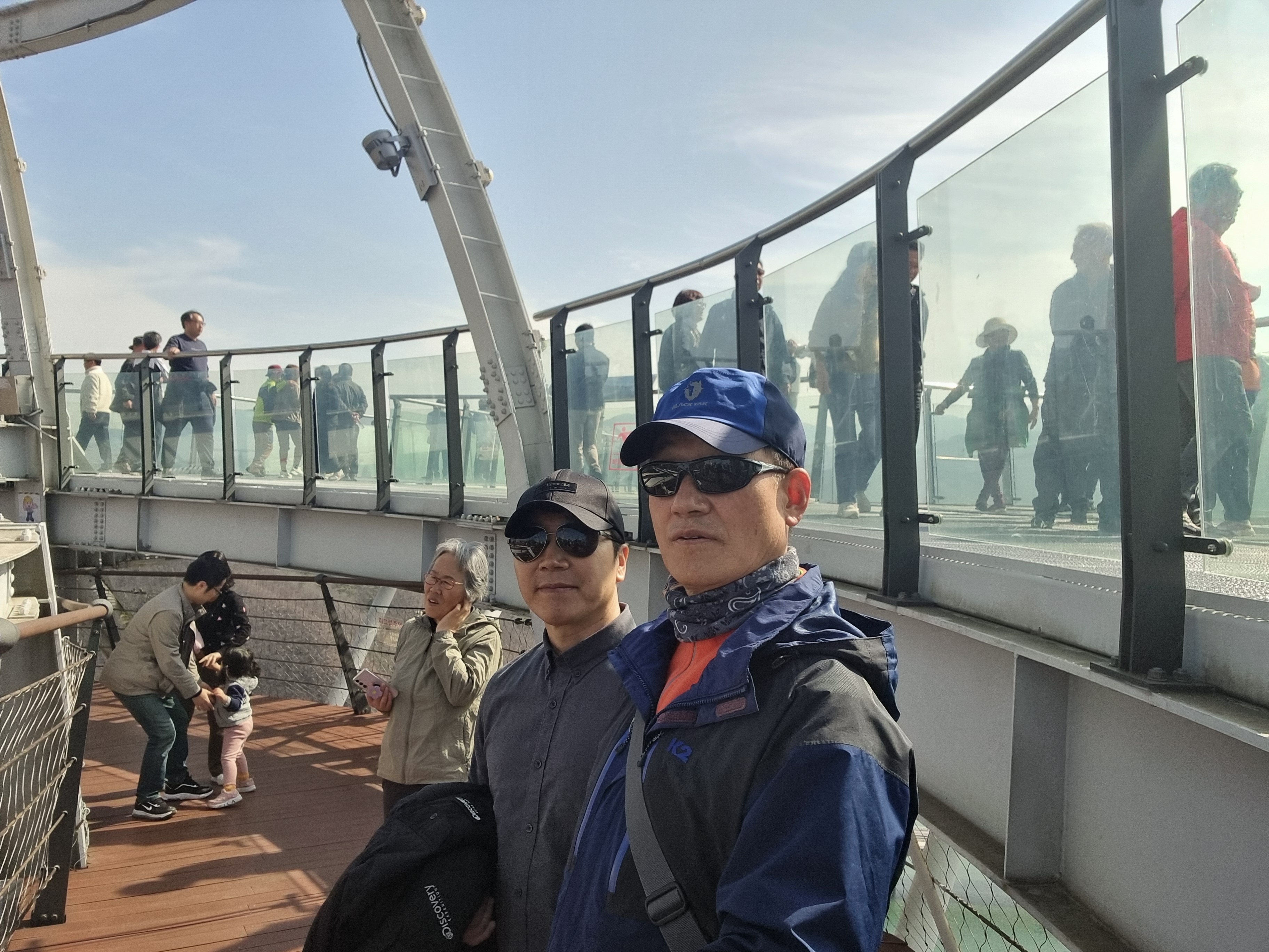 정상 전망대에 돌출 된 부분에는 10명이상 붙어서 단체 사진을 찍지 말라고 안내하시는 분이 안내를 합니다. 조금씩 흔들리는게 느껴지면 다리에 힘이 빠지는 듯 합니다.