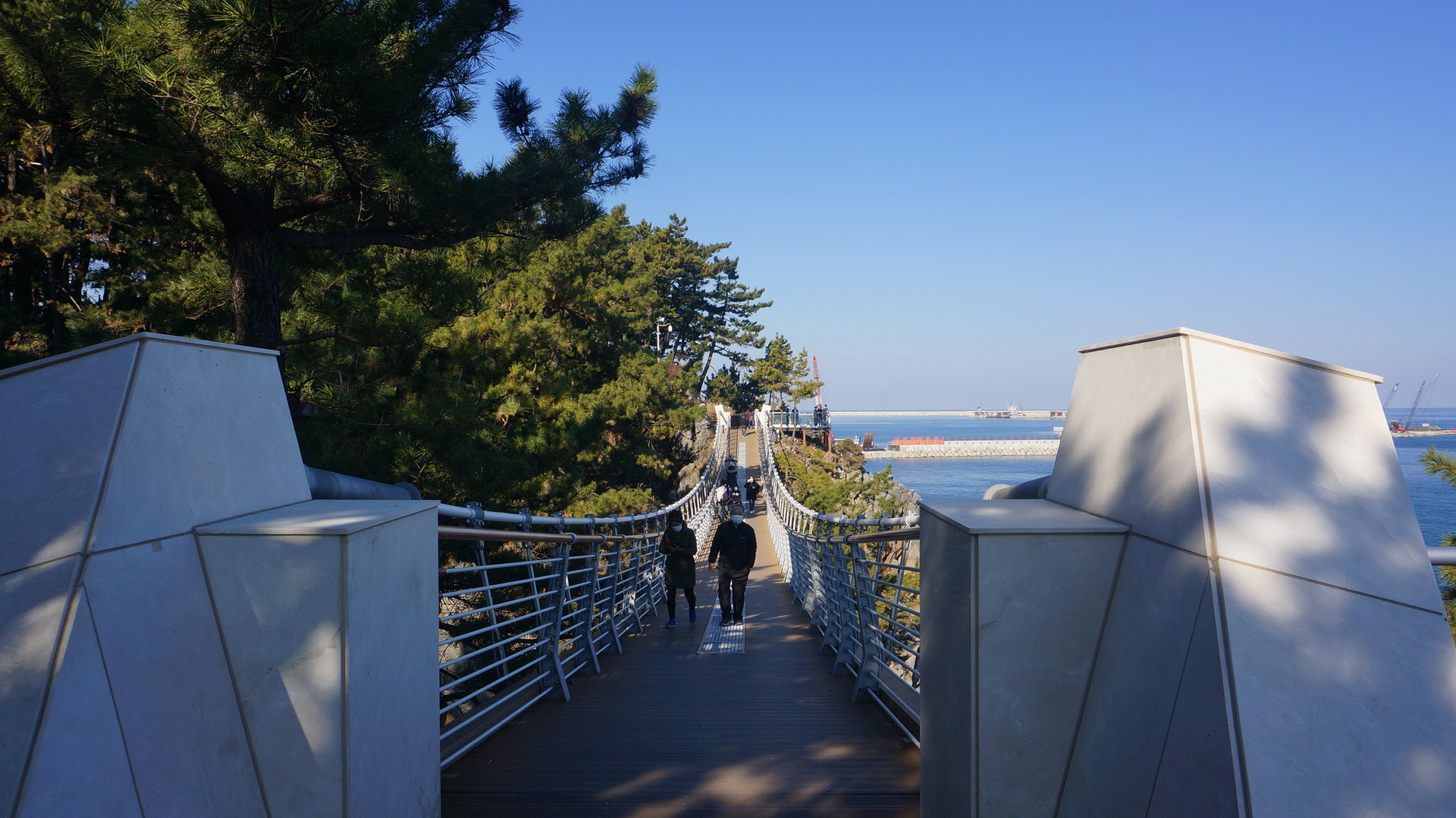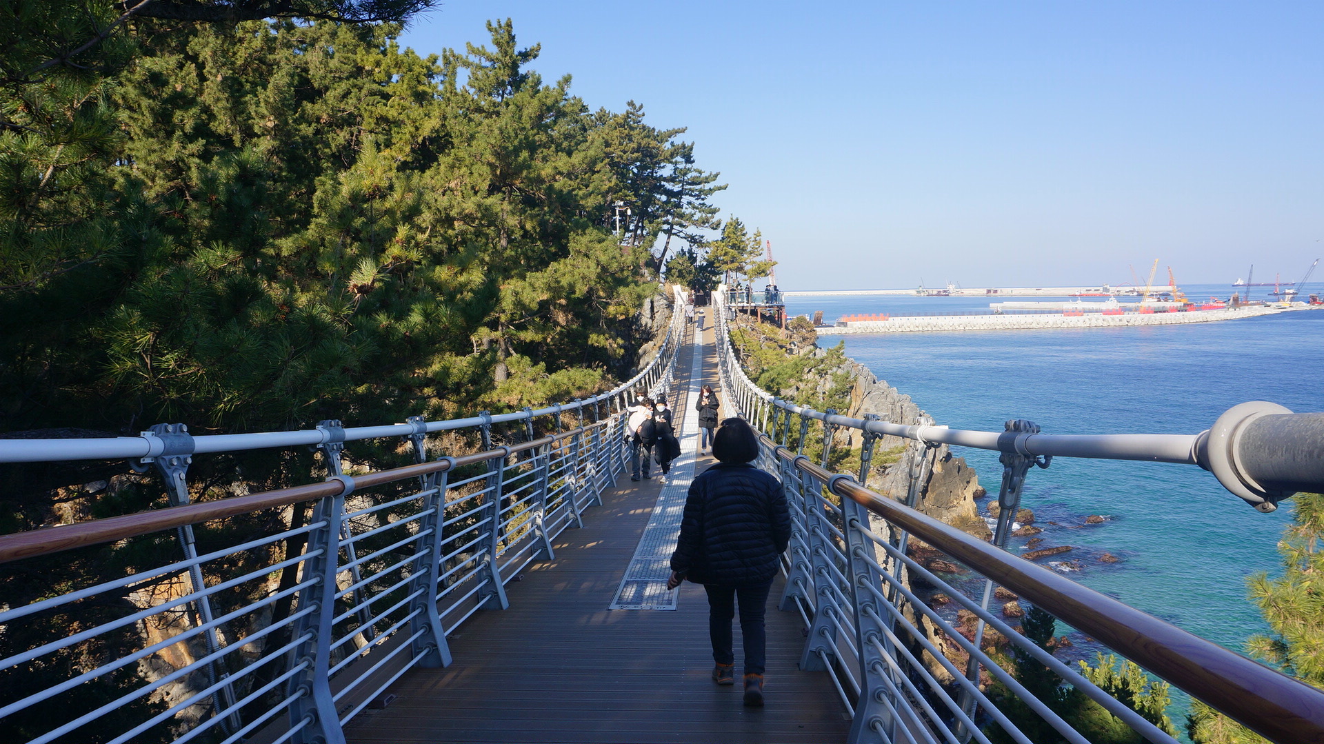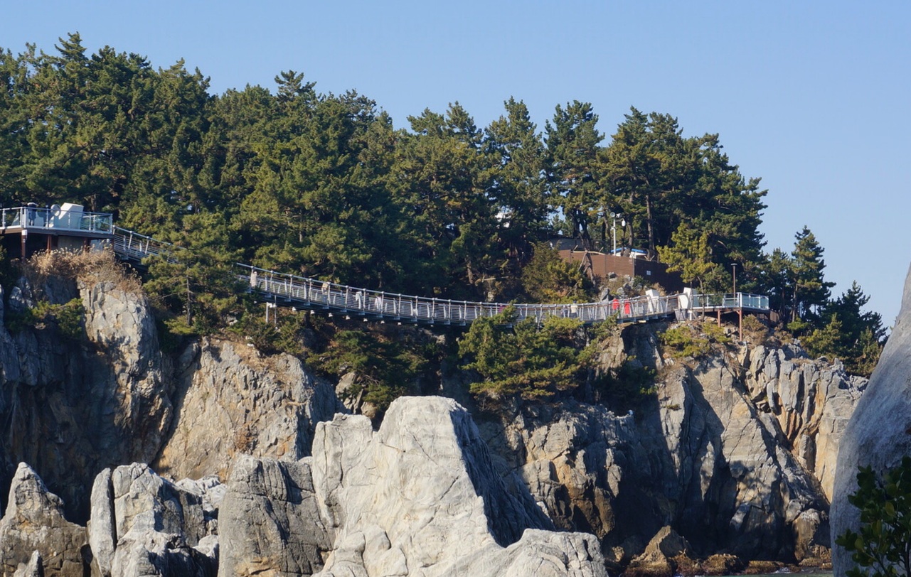 동해의 출렁다리를 보면 출렁다리 자체는 크게 기대할 곳이 아닌 곳같구요. 출렁다리 가운데에서 탁뜨인 바다풍광을 시원스럽게 볼 수 있어좋더군요.