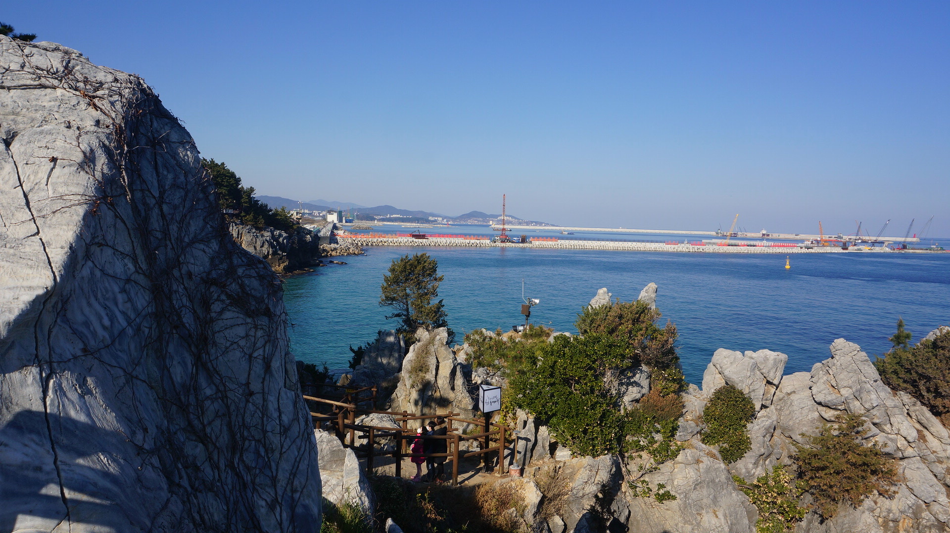 날씨가 풀려 따뜻한 날씨에 푸른하늘이 바다에 녹아 바다색이 더욱 푸르게 느껴지네요.