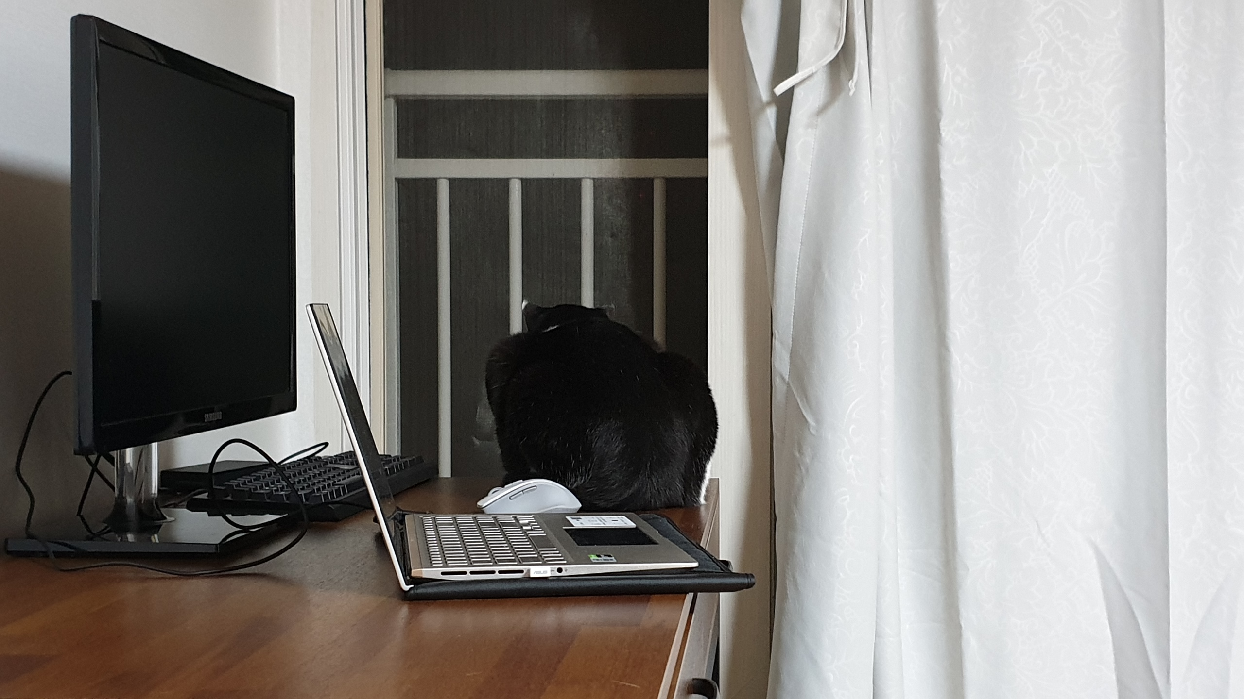 컴터 앞에서 얼쩡거려 싫은 소리를 했더니 삐쳤다.