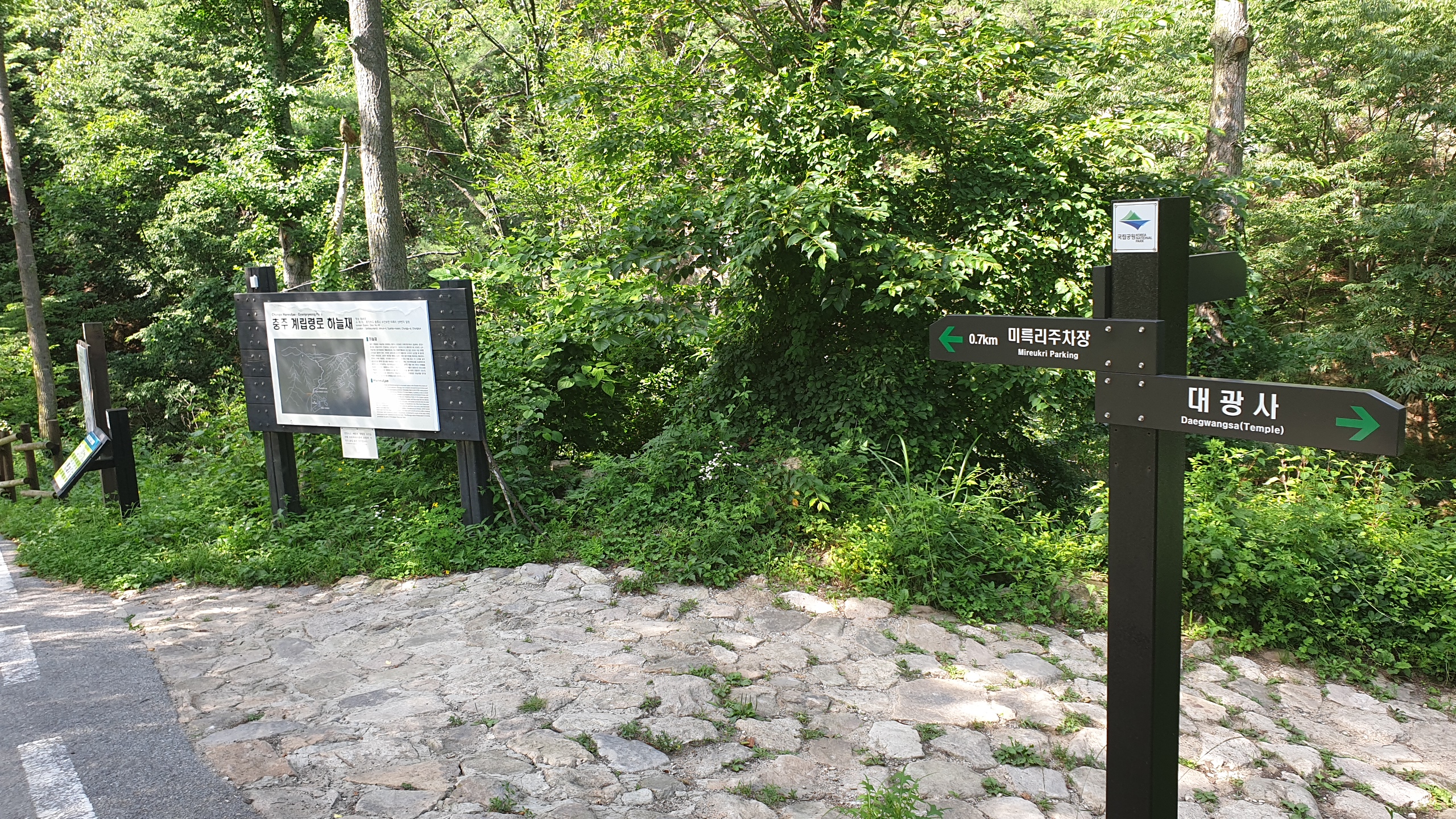 충청북도 충주시 수안보면에 있는 고려전기 석굴을 주불전으로 하는 사찰터인 충주미륵대원지 아래에서 시작하는코스입니다.