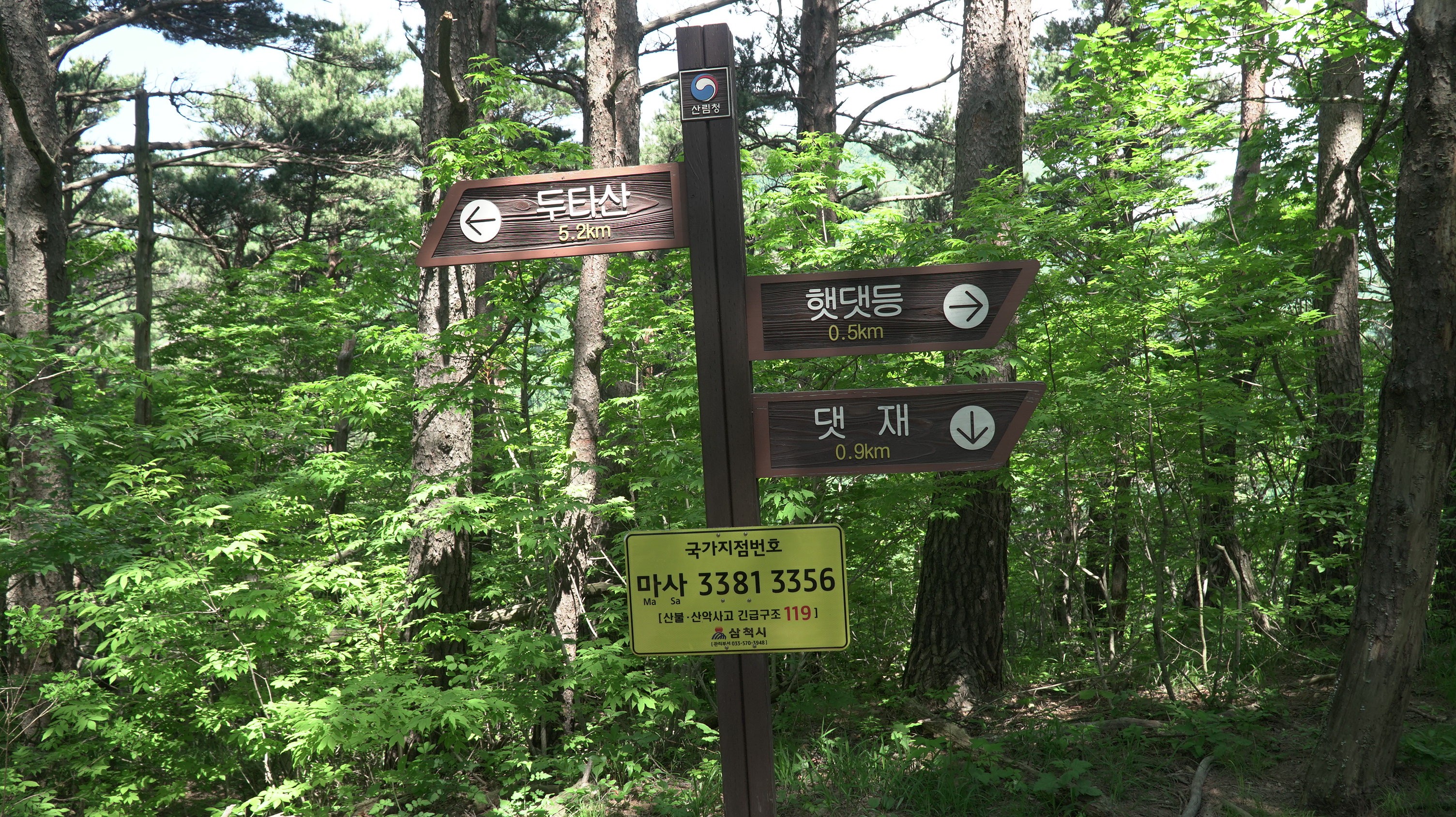 다 내려오면 임도가 나오는데요. 임도 들어서기 전에 이런 표지판이 있어요.